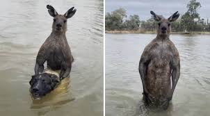 A kangaroo was spotted grabbing a dog with its paw hands and then disemboweling the dog with its legs of steel.