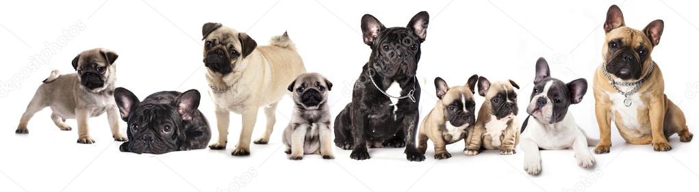 Aside from the oversized, upward-pointing βbat earsβ that are their signature feature. Frenchies resemble their larger namesake a great deal. Their compact bodies are stocky, and the coat is short and smooth. A wrinkly face featuring a very short nose is framed by a large and square head. They come in a wide array of hues, but brindle, white, and fawn are the most common colorings for this particular breed.