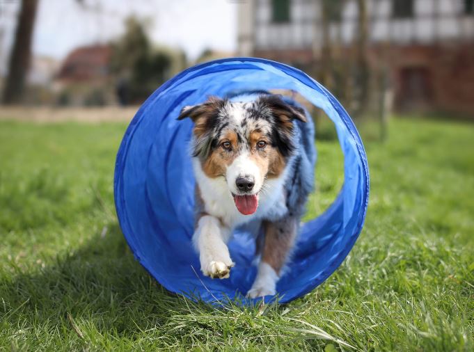 Dog agility is a sport where you direct your dog through a pre-set obstacle course within a certain time limit. Courses typically have between 14-20 obstacles, which can include tunnels, weave poles, tire jumps, seesaws, and pause tables where the dog must stop for a set amount of time.