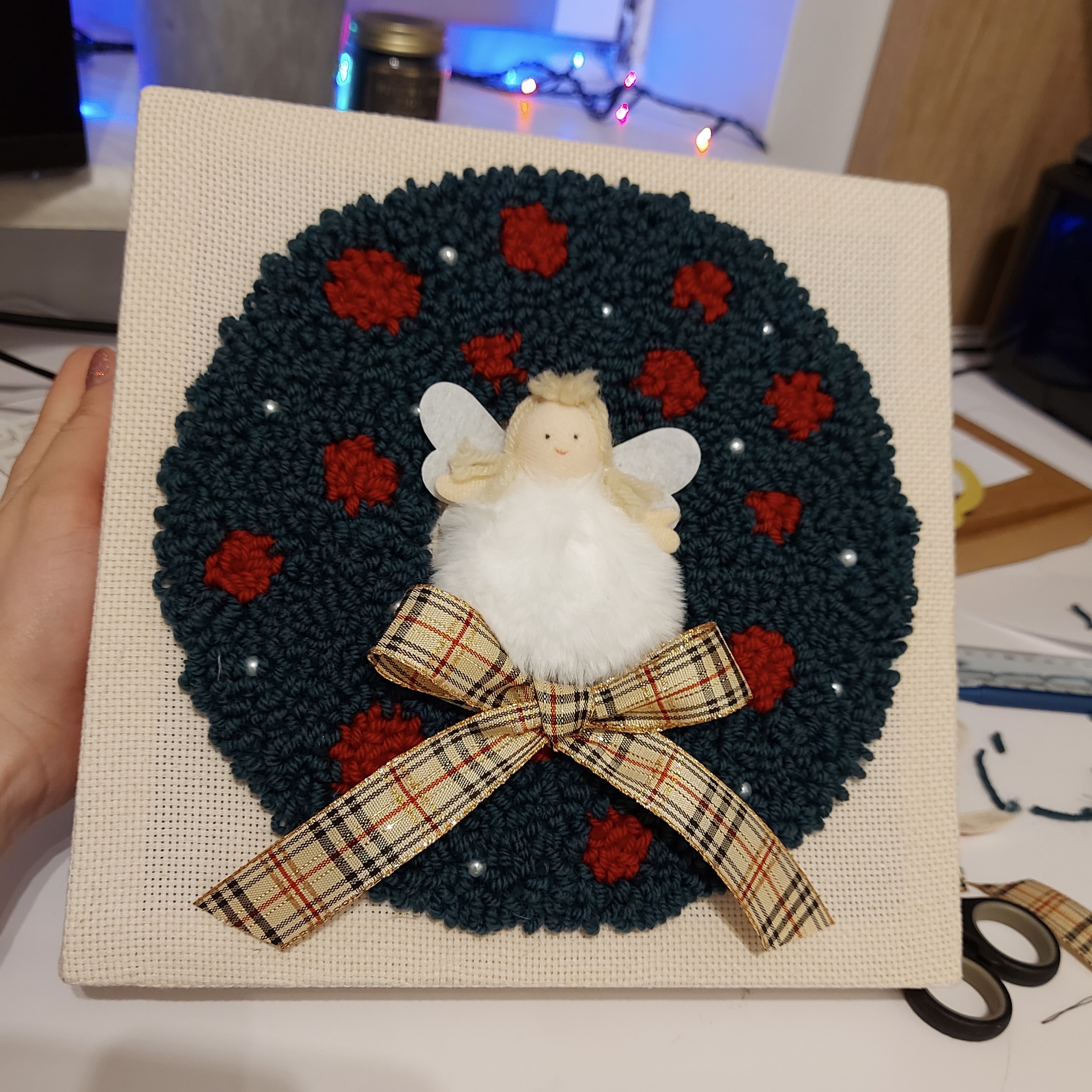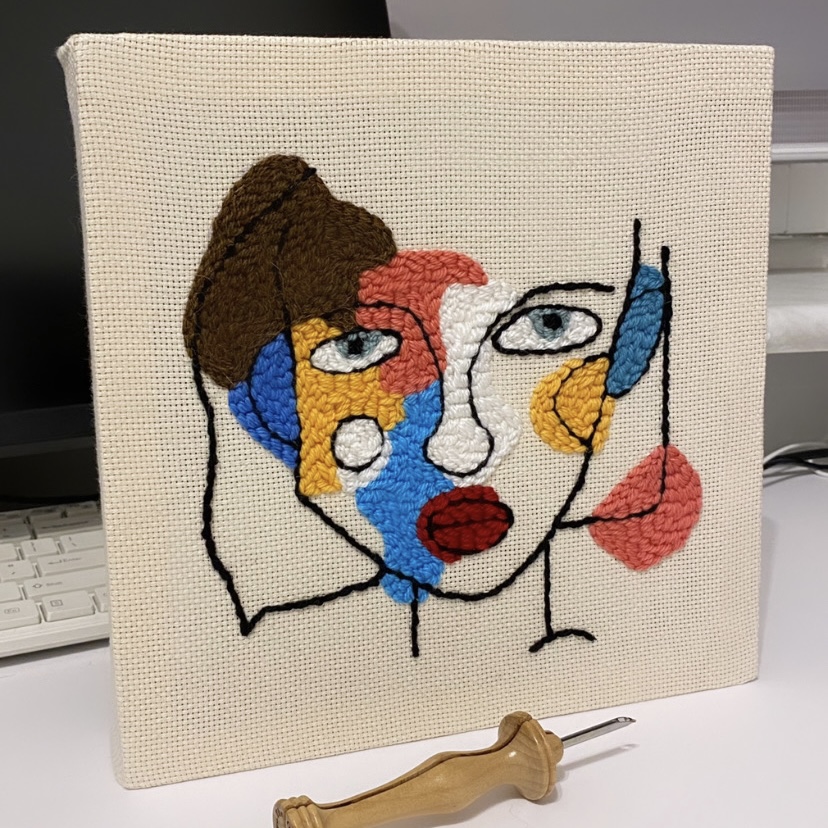 called a punch needle to create loops of yarn on woven cloth. The needle