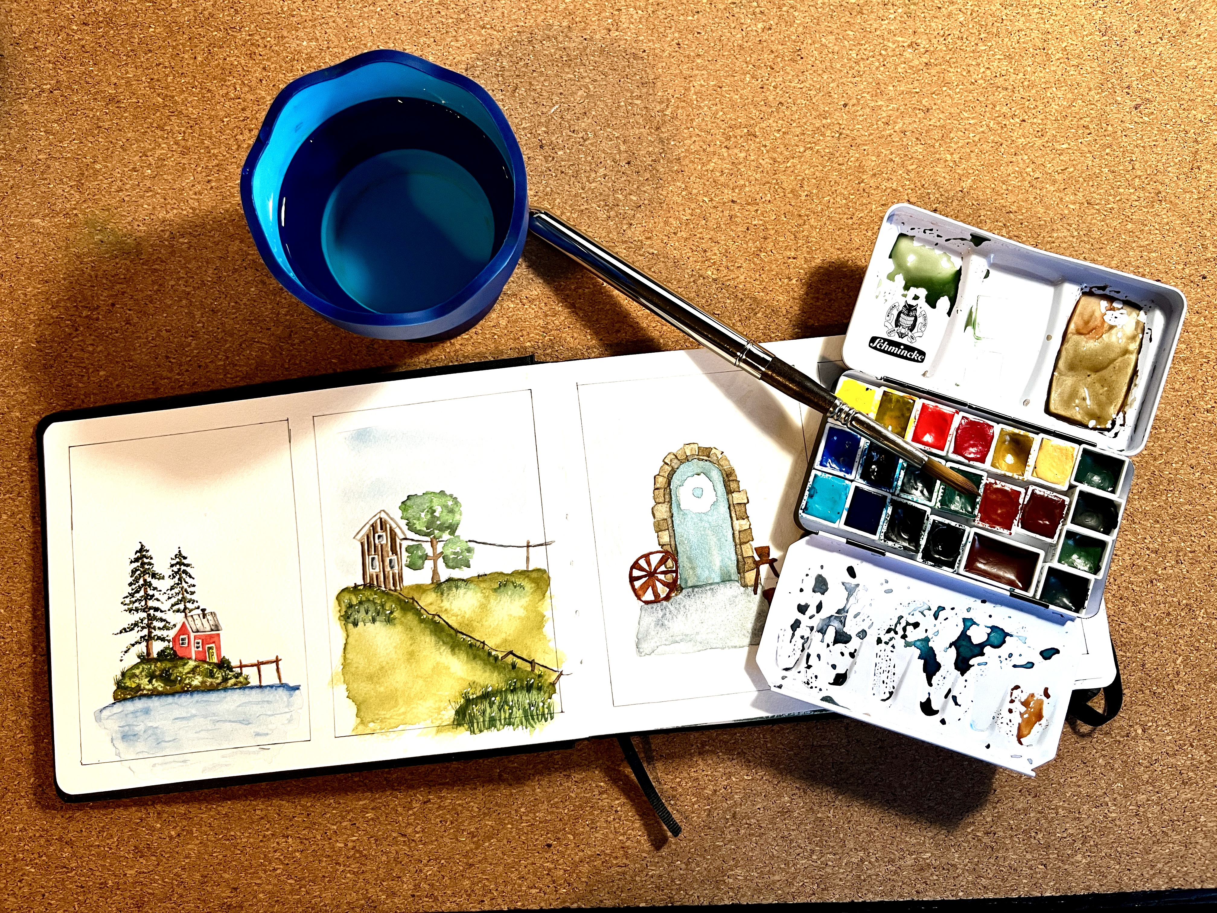 Watercolor (American English) or watercolour (British English; see spelling differences), also aquarelle (French: [akwaʁɛl]; from Italian diminutive of Latin aqua 'water'), is a painting method in which the paints are made of pigments suspended in a water-based solution. Watercolor refers to both the medium and the resulting artwork. Aquarelles painted with water-soluble colored ink instead of modern water colors are called aquarellum atramento (Latin for "aquarelle made with ink") by experts. However, this term has now tended to pass out of use.