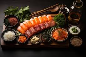 varies widely, but the one key ingredient is "sushi rice", also referred