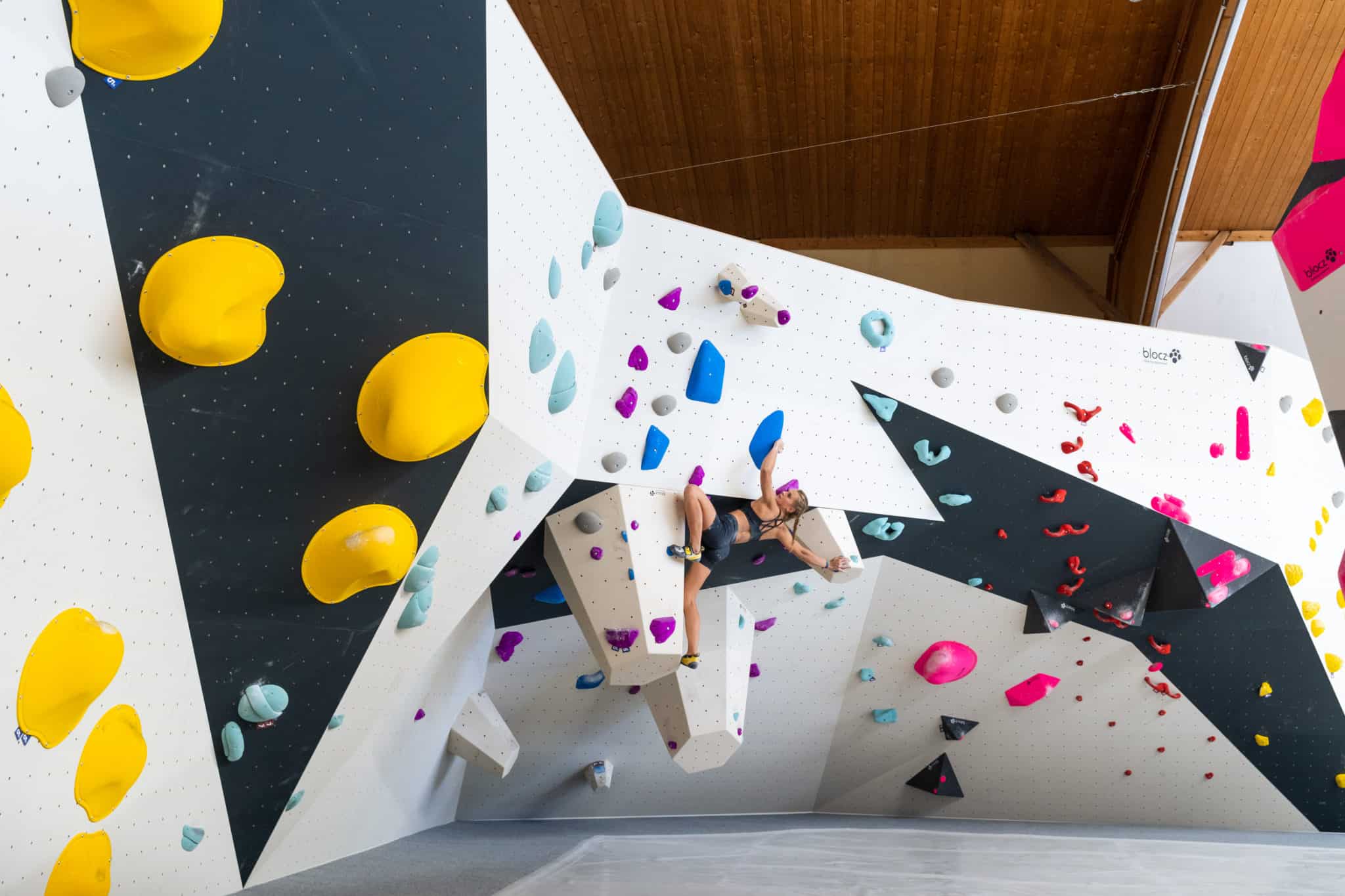 Bouldering is the act of technical rock climbing on short walls or large boulders. Artificial climbing walls are used to simulate boulder problems in an indoor environment, usually at climbing gyms.