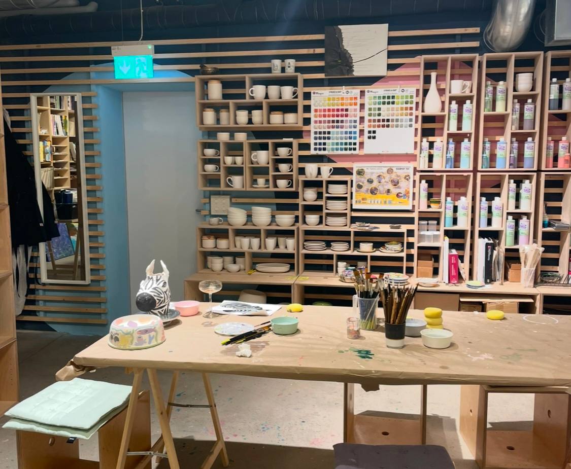The process of painting pottery begins with the selection of a bisque, which is unglazed, white ceramic ware that has been fired once to make it durable but still porous enough to absorb glazes or underglazes. The choice of bisque shape can range from plates and mugs to more intricate figurines and vases. Once a piece is chosen, it can be decorated using various techniques and tools such as brushes, sponges, and stencils. Painters can apply underglazes, which are special colors designed to be fired in a kiln, allowing the artwork to be permanent and usable.