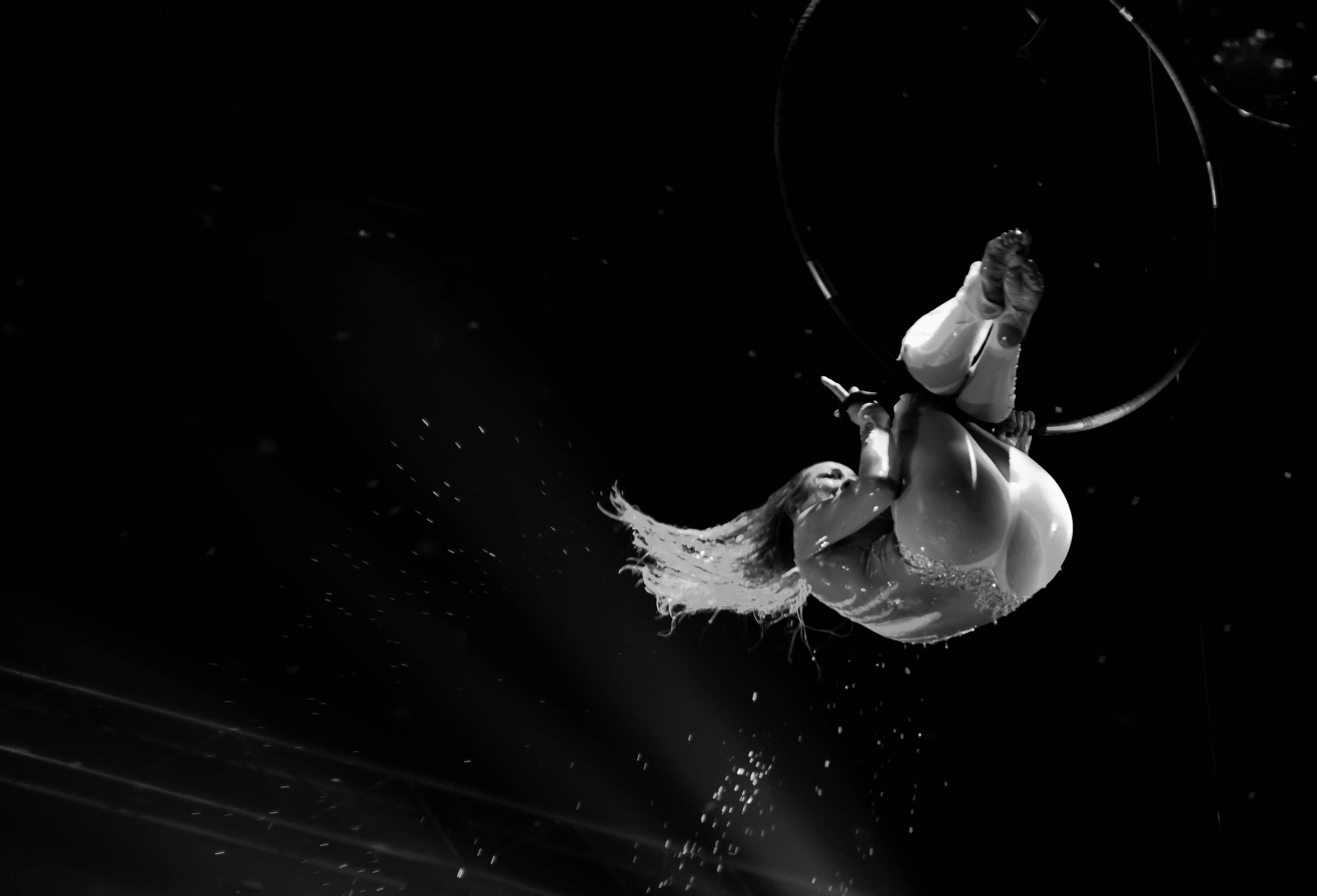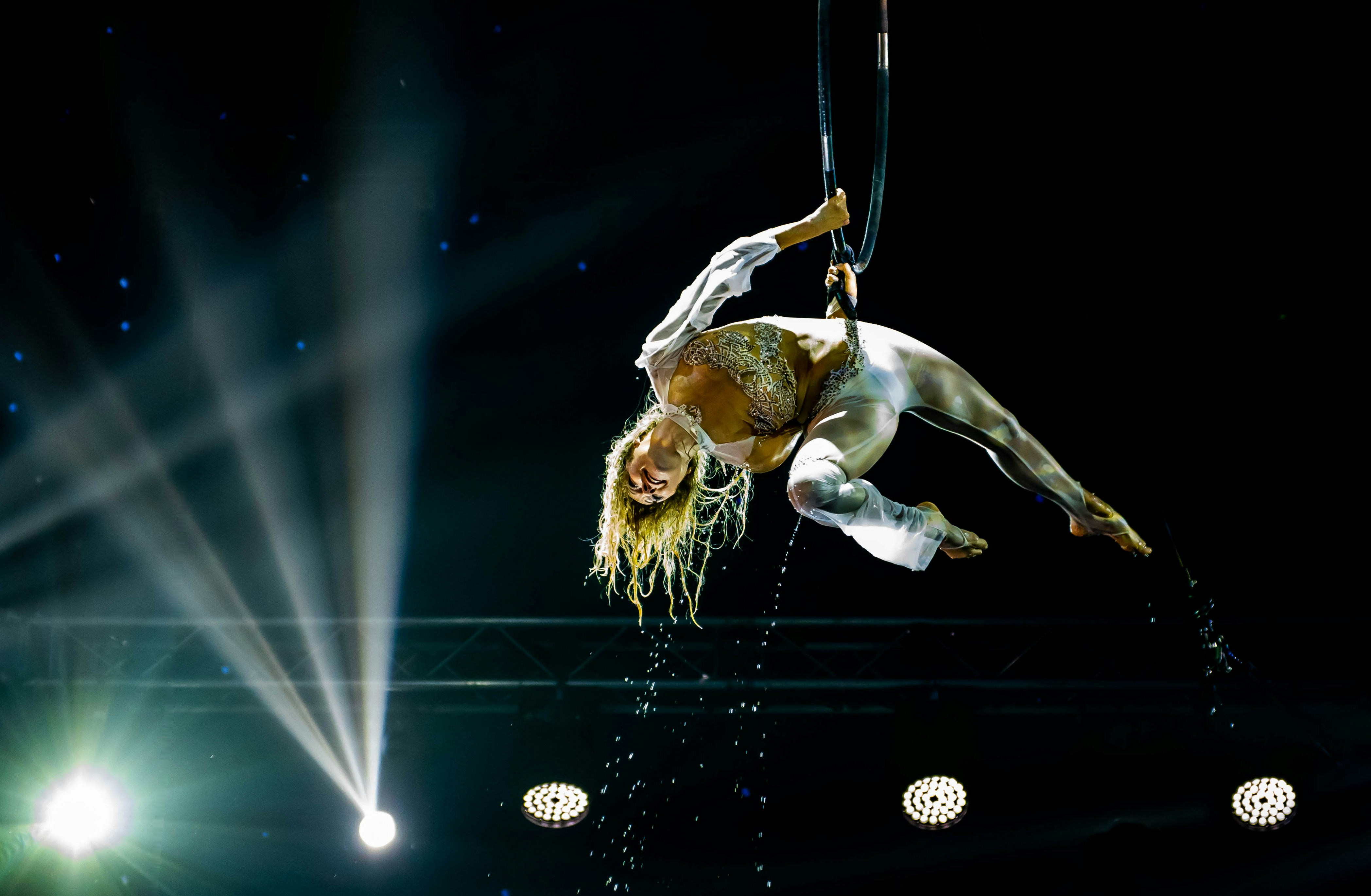 The aerial hoop (also known as the lyra, aerial ring or cerceau/cerceaux) is a circular steel apparatus (resembling a hula hoop) suspended from the ceiling, on which circus artists may perform aerial acrobatics. It can be used static, spinning, or swinging. Tricks that can be performed include the Candlestick, Bird's Nest and Crescent Moon.