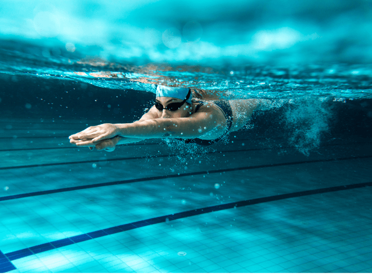 Swimming, in recreation and sports, the propulsion of the body through water by combined arm and leg motions