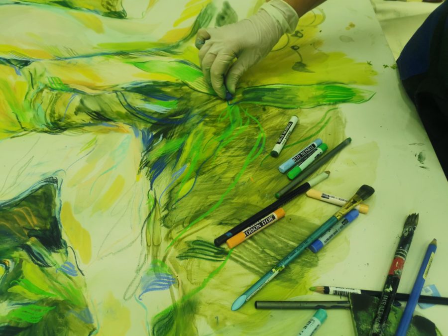 but other implements, such as knives, sponges, and airbrushes, may be used.