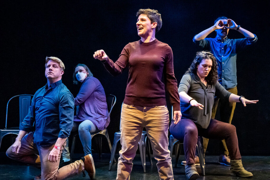 Improvisational theatre, often called improvisation or improv, is the form of theatre, often comedy, in which most or all of what is performed is unplanned or unscripted, created spontaneously by the performers. In its purest form, the dialogue, action, story, and characters are created collaboratively by the players as the improvisation unfolds in present time, without use of an already prepared, written scripts.