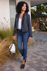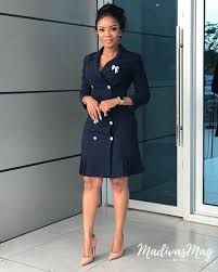 Corporate outfits for ladies generally fall under "business professional," "business casual," or "smart casual" dress codes. Business professional typically involves tailored suits, pantsuits, dresses, or skirt and blouse combinations with professional shoes and accessories. Business casual allows for more relaxed options like blazers, button-down shirts, and dress pants or skirts, while still maintaining a professional look. Smart casual is a mix of casual and formal, allowing for jeans or similar bottoms with a nicer top, blazer, or cardigan