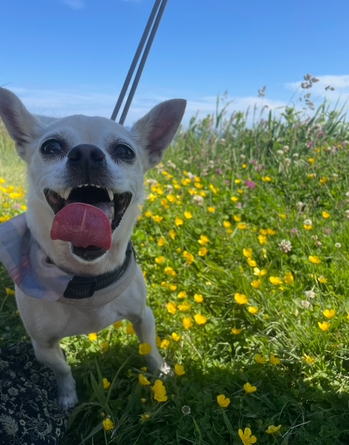 Georgie is my 9-year-old deer head chihuahua, and she’s truly one of a kind. She’s incredibly smart and endlessly cute, with big ears, warm brown eyes, and the sweetest, happiest smile you’ve ever seen. Despite her small size, she’s always up for an adventure—her favorite kind involves a several-hour hike followed by the deepest, most satisfying nap of her life. She’s also a total cuddlebug who lives for belly rubs and gentle pets, and she’ll do just about anything for a piece of cheese, her favorite treat.