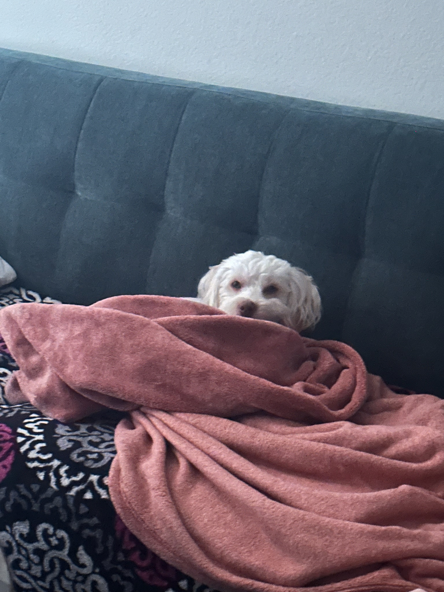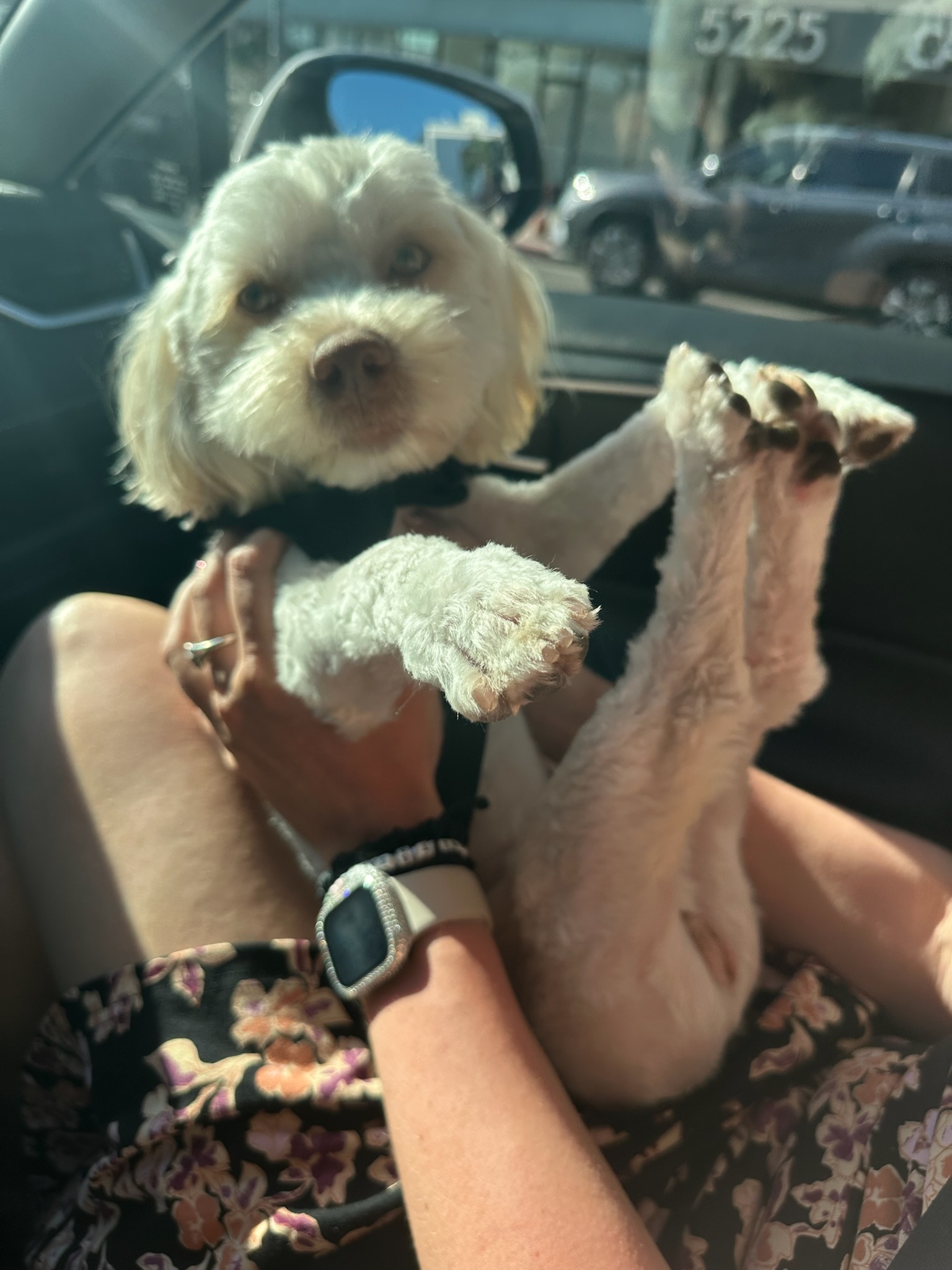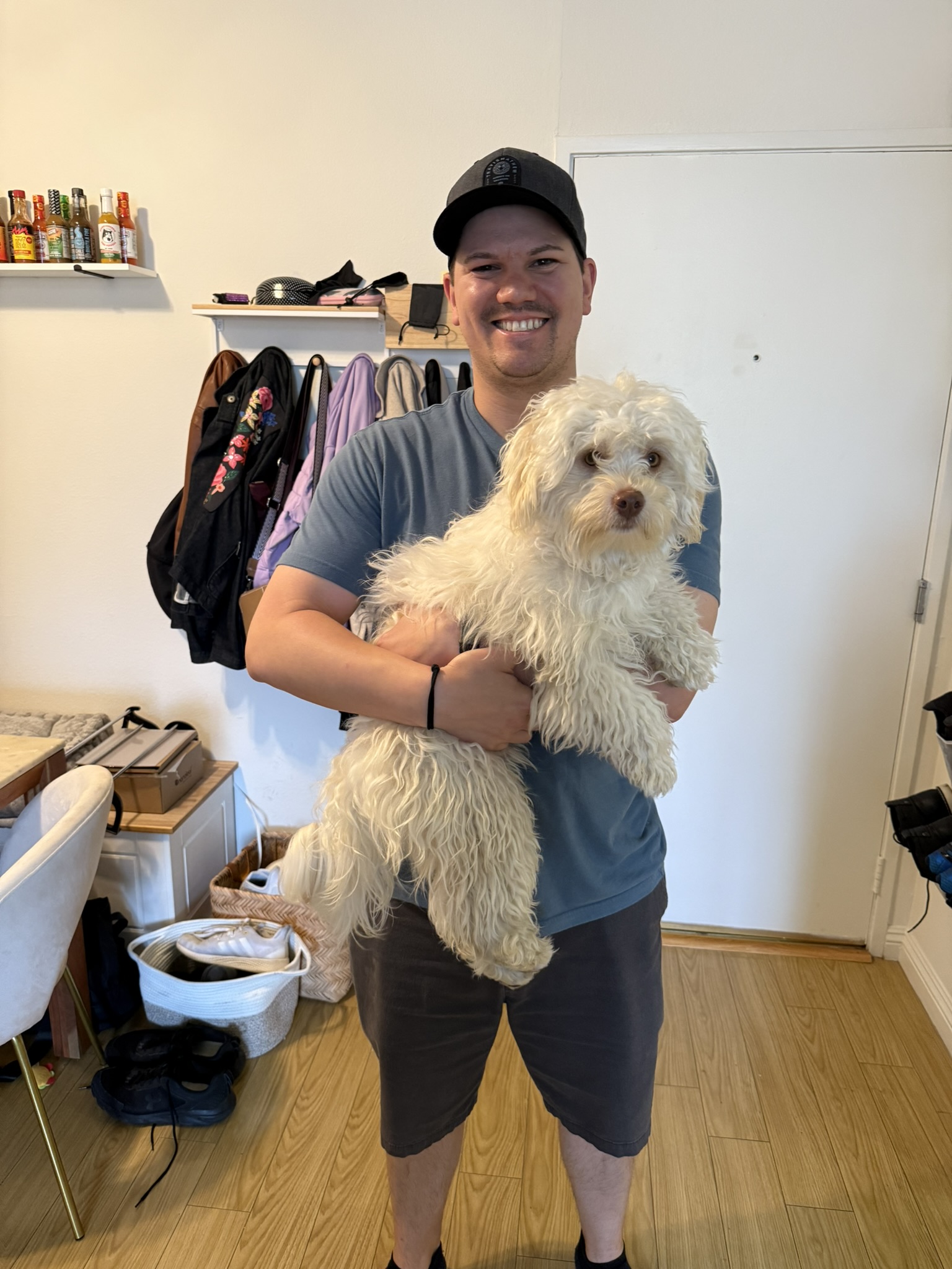 Our Maltipoo, Casper, came to us as a stray at 1 years old. He is a