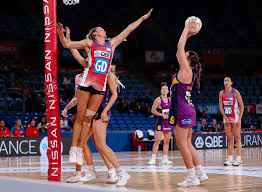 Netball is a ball sport played on a rectangular court by two teams of seven players. The primary objective is to shoot a ball through the defender's goal ring while preventing the opposing team from shooting through their own.