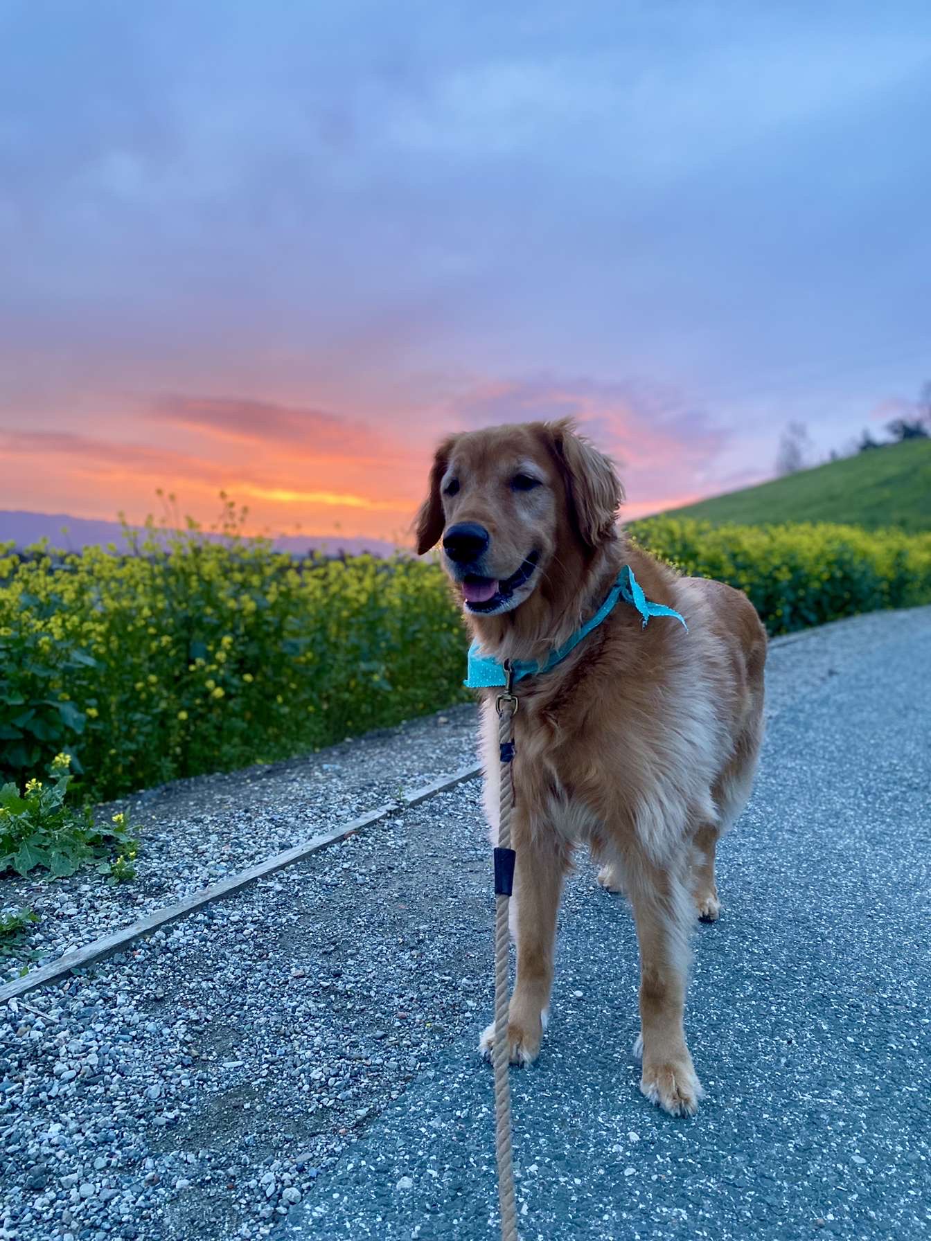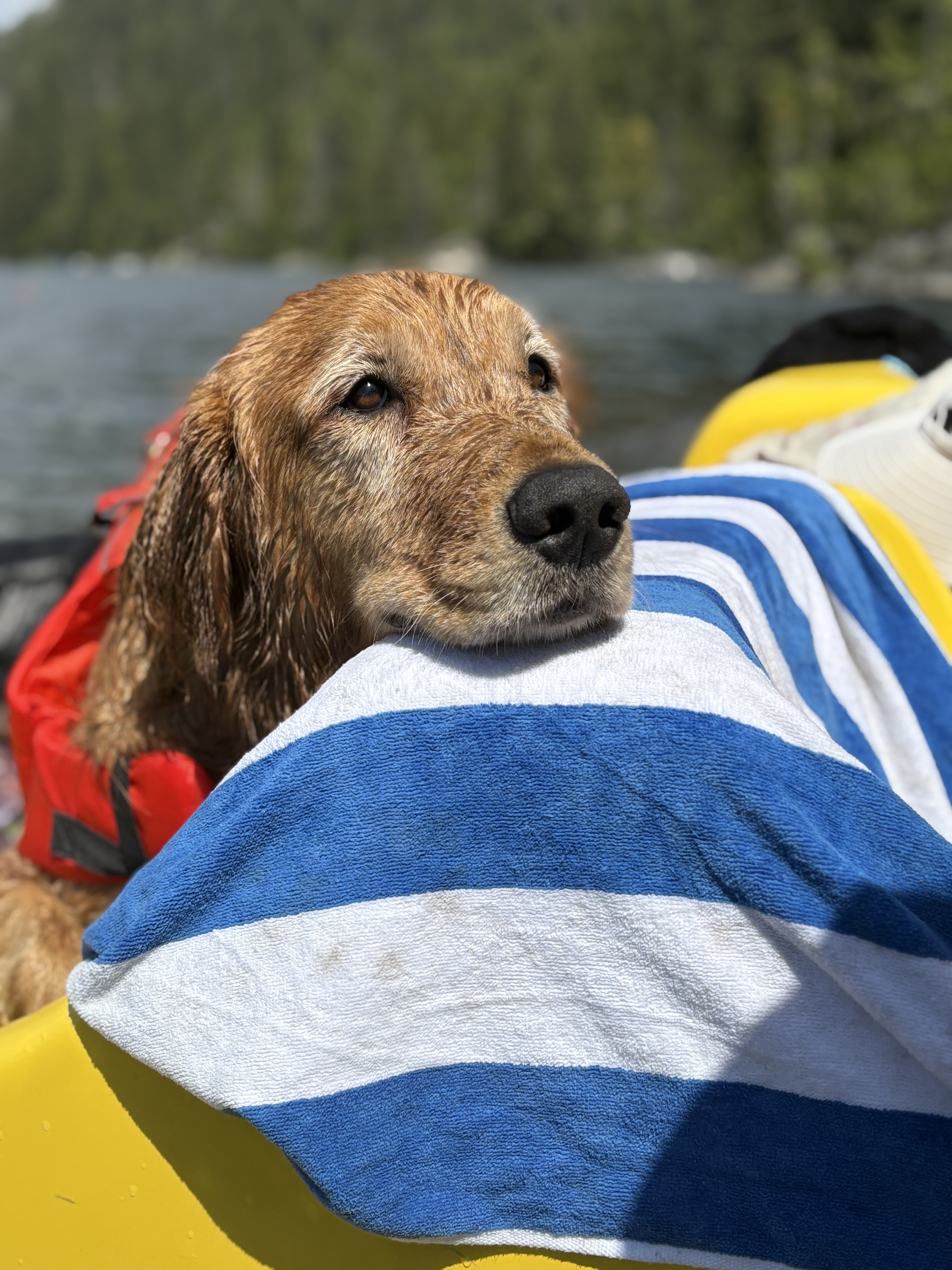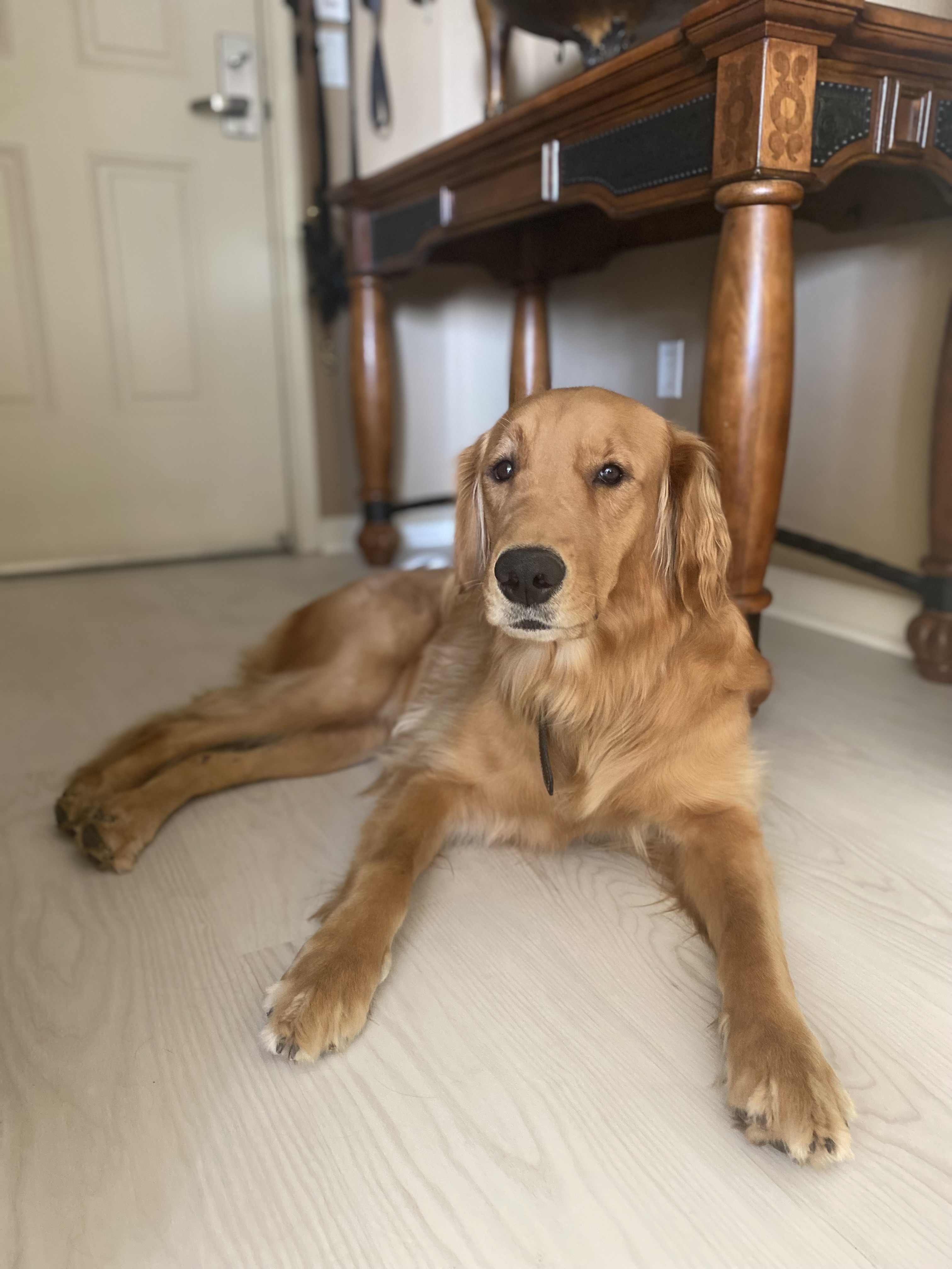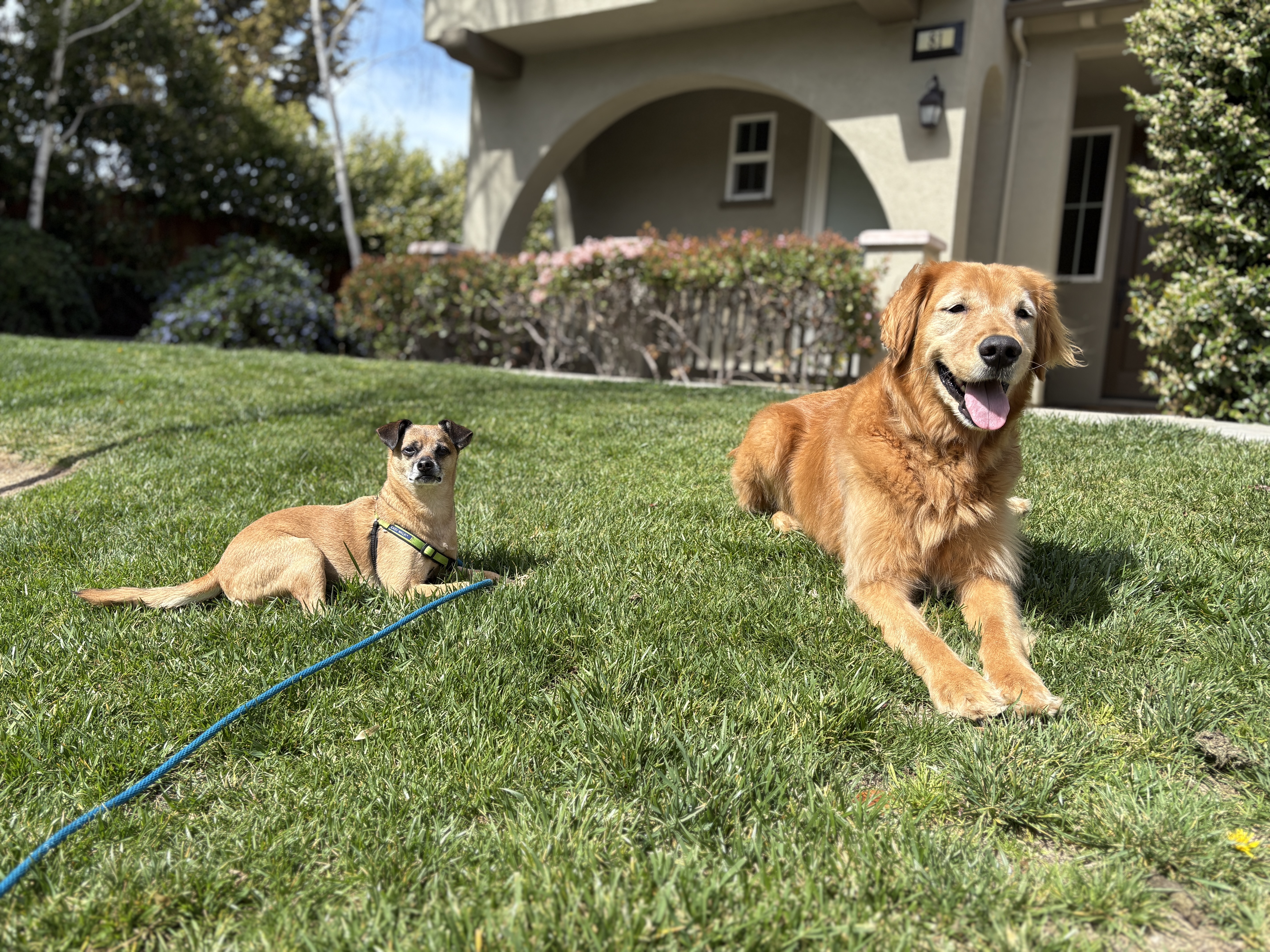 with other big dogs. Originally a service dog, Akchi is now retired and