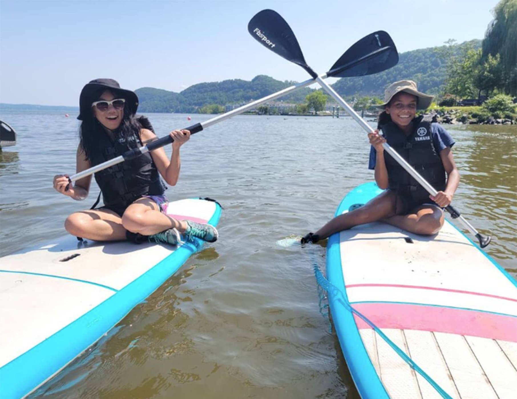 kneeling on a paddleboard or surfboard in the ocean or other body of water.[1] Paddleboarding is usually