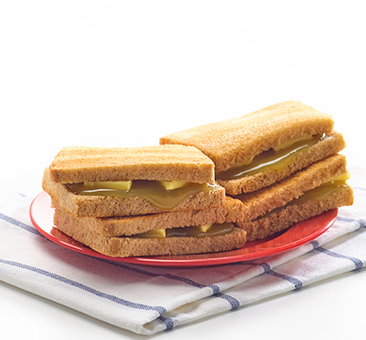 Kaya Toast is made of thin, white bread that has its crusts sliced away. It is toasted to a golden brown colour, an indication that it is crispy. Kaya, along with thin slices of cold butter, are sandwiched between two slices of toast. A perfect blend of warm and cool sensations in the mouth.