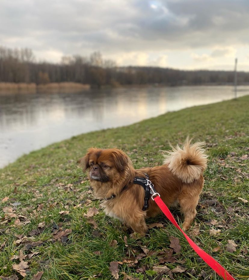 The Pekingese (also spelled Pekinese) is a breed of toy dog, originating in China. The breed was favored by royalty of the Chinese Imperial court as both a lap dog and companion dog, and its name refers to the city of Peking (Beijing) where the Forbidden City is located. The breed has several characteristics and health issues related to its unique appearance. Because of its desirable characteristics, the Pekingese has been part of the development of designer crossbreeds, such as the Peekapoo (crossed with a poodle) and Peke-a-tese (crossed with a Maltese).