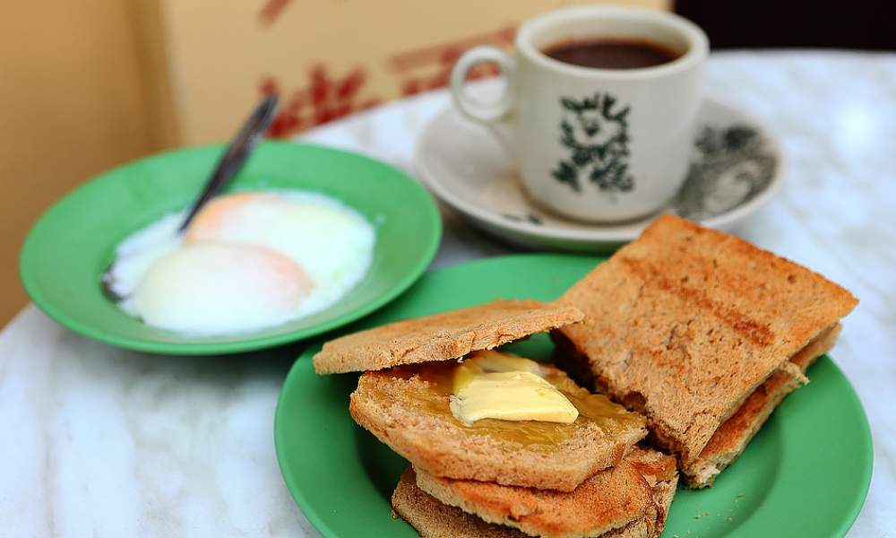 Kaya is a local green or brown jam made of coconut milk, eggs and sugar. This fragrant jam is traditionally cooked over low heat for many hours. The warm kaya toast is served with cold pieces of butter.