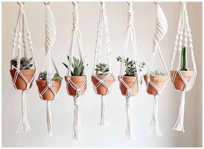 Macramé is a form of textile produced using knotting (rather than weaving or knitting) techniques. The primary knots of macramé are the square (or reef knot) and forms of "hitching": various combinations of half hitches. It was long crafted by sailors, especially in elaborate or ornamental knotting forms, to cover anything from knife handles to bottles to parts of ships. Cavandoli macramé is one variety that is used to form geometric and free-form patterns like weaving. The Cavandoli style is done mainly in a single knot, the double half-hitch knot. Reverse half hitches are sometimes used to maintain balance when working left and right halves of a balanced piece. Leather or fabric belts are another accessory often created via macramé techniques. Most friendship bracelets exchanged among schoolchildren and teens are created using this method. Vendors at theme parks, malls, seasonal fairs and other public places may sell macramé jewelry or decoration as well.