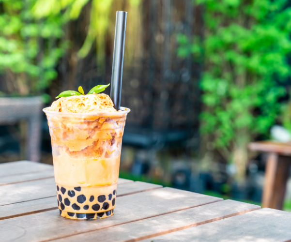 A Taiwanese cold drink made with tea, sweetened milk or other flavourings, and balls or βpearlsβ of tapioca. It can be served cold βοΈ or hot π₯.