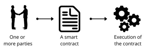 The transactions that happen in a smart contract are processed by the blockchain, which means they can be sent automatically without a third party.