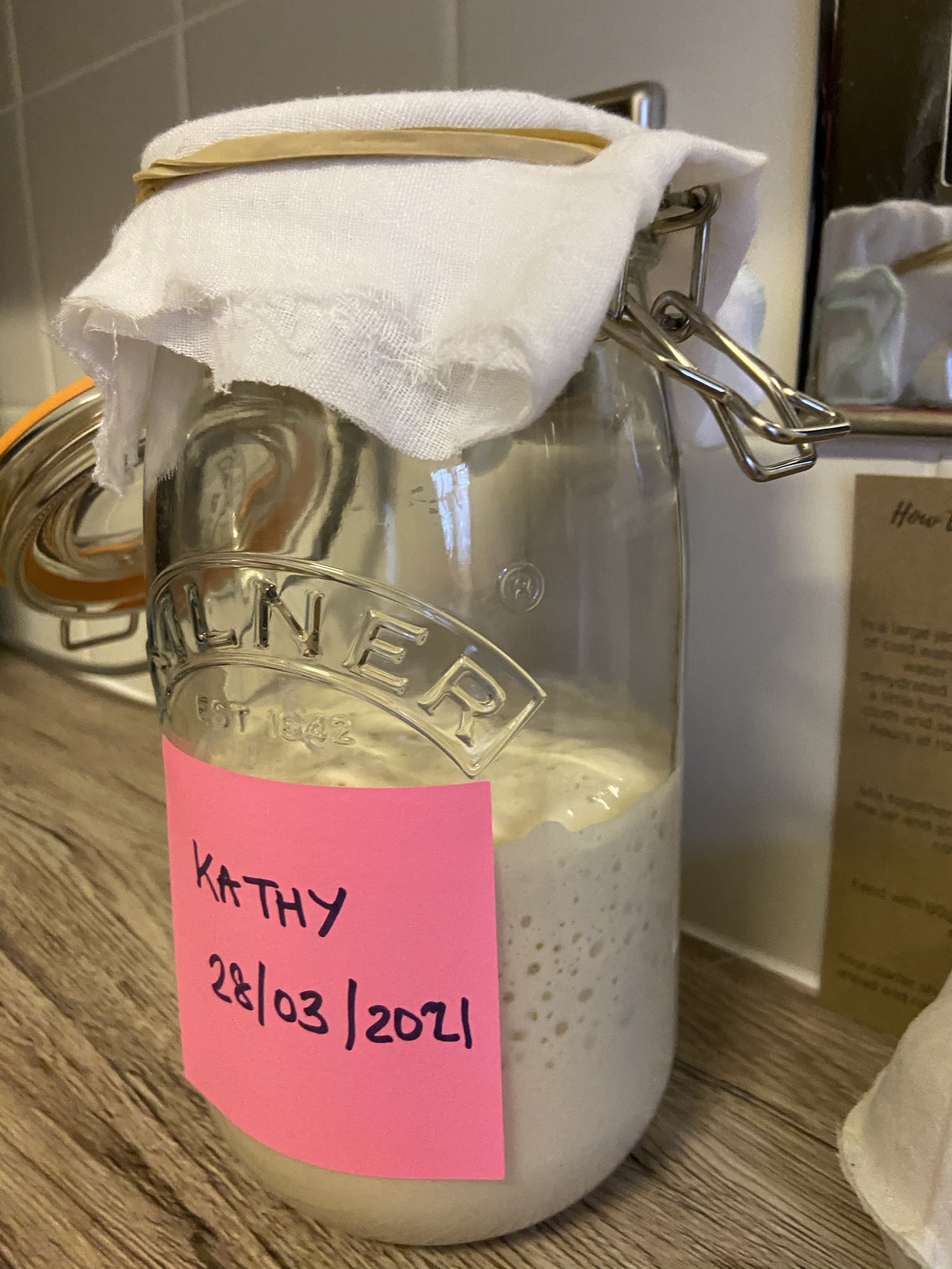 By giving the starter fresh flour and water once a day, these yeast began to multiply, producing more and more yeast within the starter. When enough of these yeast are present, the starter is strong enough to make bread rise.