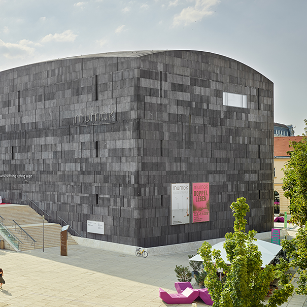 The mumok, a striking dark grey cuboid, is the largest museum in