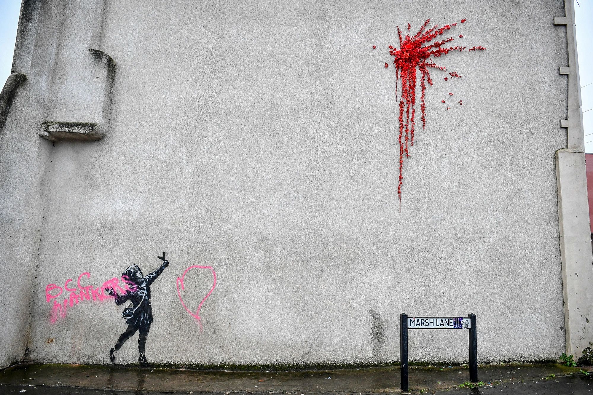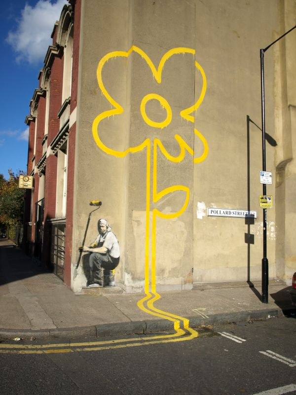 Street art is visual art created in public locations for public visibility. It has been associated with the terms independent art, post-graffiti, neo-graffiti and guerrilla art. It has evolved from the early forms of defiant graffiti into a more commercial form of art, as one of the main differences now lies with the messaging. Street art is often meant to provoke thought rather than rejection among the general audience through making its purpose more evident than that of graffiti. The issue of permission has also come at the heart of street art, as graffiti is usually done illegally, whereas street art nowadays be the product of an agreement or even sometimes a commission. However, it remains different from traditional art exposed in public spaces by its explicit use of said space in the conception phase.