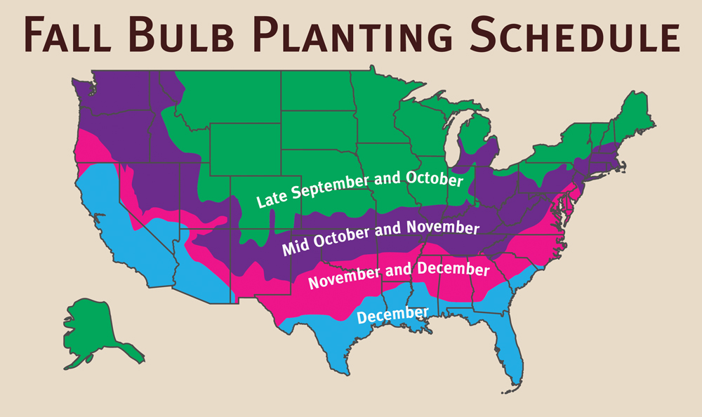 spring-blooming bulbs too early and they won’t bloom; plant too late and
