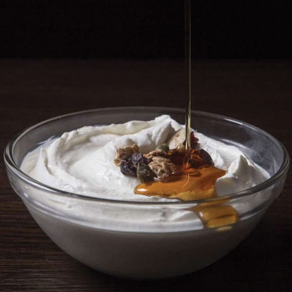 Strained yogurt, Greek yogurt, yogurt cheese, sack yogurt, or kerned yogurt is yogurt that has been strained to remove most of its whey, resulting in a thicker consistency than normal unstrained yogurt, while still preserving the distinctive sour taste of yogurt. Like many types of yogurt, strained yogurt is often made from milk that has been enriched by boiling off some of its water content, or by adding extra butterfat and powdered milk. In Europe and North America, it is often made from low-fat or fat-free cow's milk. In Iceland, a similar product named skyr is made.