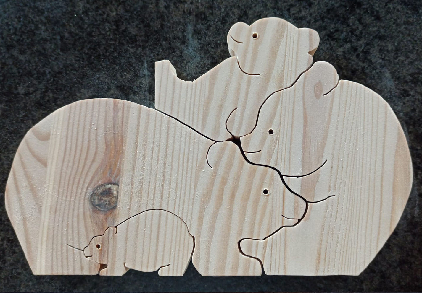 These wooden bears are handmade with much love and come from the beautiful countryside of Swabia. They are perfect as a gift, for example, for birth or as a gift for toddlers. The bear family is individually assemblable, depending on how many bears should form a family. From three up to six family members everything is possible. In addition, names can be engraved per bear. So you get the perfect puzzle individually designed according to your wishes sent home from us. We only use wood with a PEFC cerificate from the sawmill Kurt Wäcker. click for more information