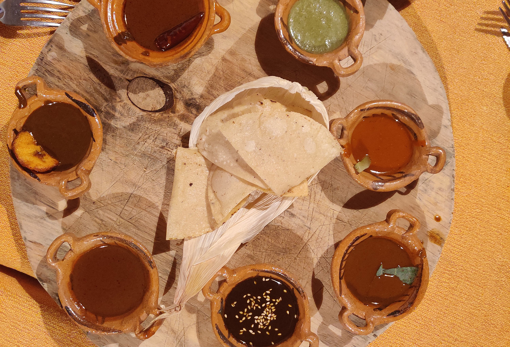 Considered as the national dish of Mexico, ingredients for traditional mole (pronounced MO-lay) typically include a combination of chiles, sesame seeds, tomatillos, spices, dried fruits, nuts, and chocolate. There are more variations than we can count, but there are seven definitive mole types.