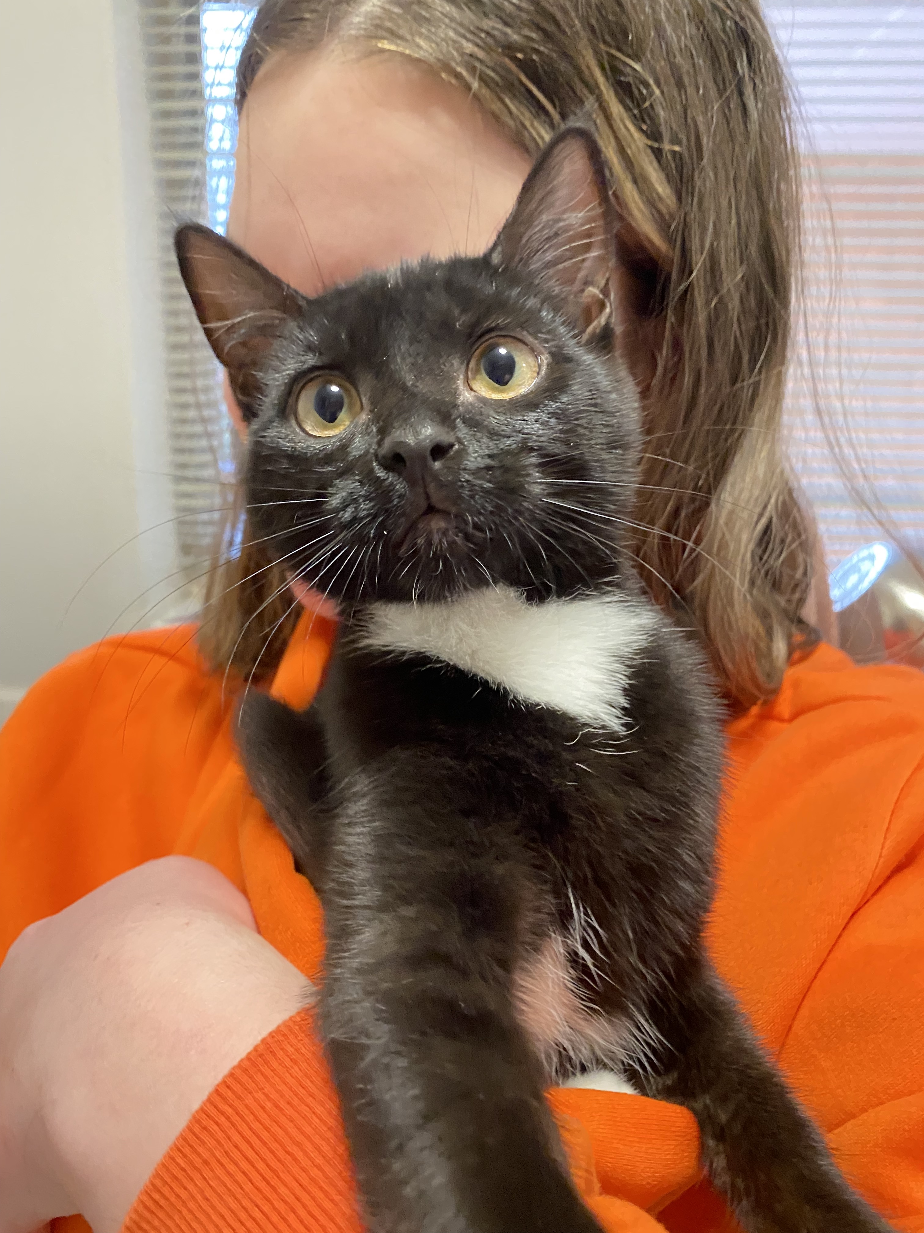Miguel is a 4 month old medium-hair kitten who lives in Australia!🇦🇺 He has a black coat with 3 white patches on his belly. He also has little white socks making him all the more adorable! His mum is Tiane and she gets him everything he needs. He is definetly cheeky when you take his toys away.