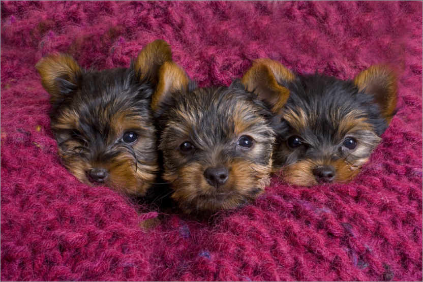 The Yorkshire Terrier (often shortened as Yorkie) is one of the smallest dog breeds of the terrier type, let alone of any dog breed. The breed developed during the 19th century in Yorkshire, England.[1] Ideally its maximum size is 7 pounds (3.2 kg).[2] A popular companion dog, the Yorkshire Terrier has also been part of the development of other breeds, such as the Silky Terrier. Most have a black and tan coat, but they are also known to have a silver-grey or a blonde coat. Yorkshire terriers are playful and energetic dogs. They often exhibit separation anxiety when left alone, which is a reason that some owners keep two dogs.