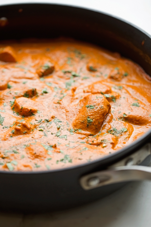 Butter chicken, traditionally known as Murgh makhani, is a type of curry made from chicken with a spiced tomato and butter (makhan) sauce. Its sauce is known for its rich texture. In addition sometimes the cream gives the curry sauce a silky smooth rich texture.