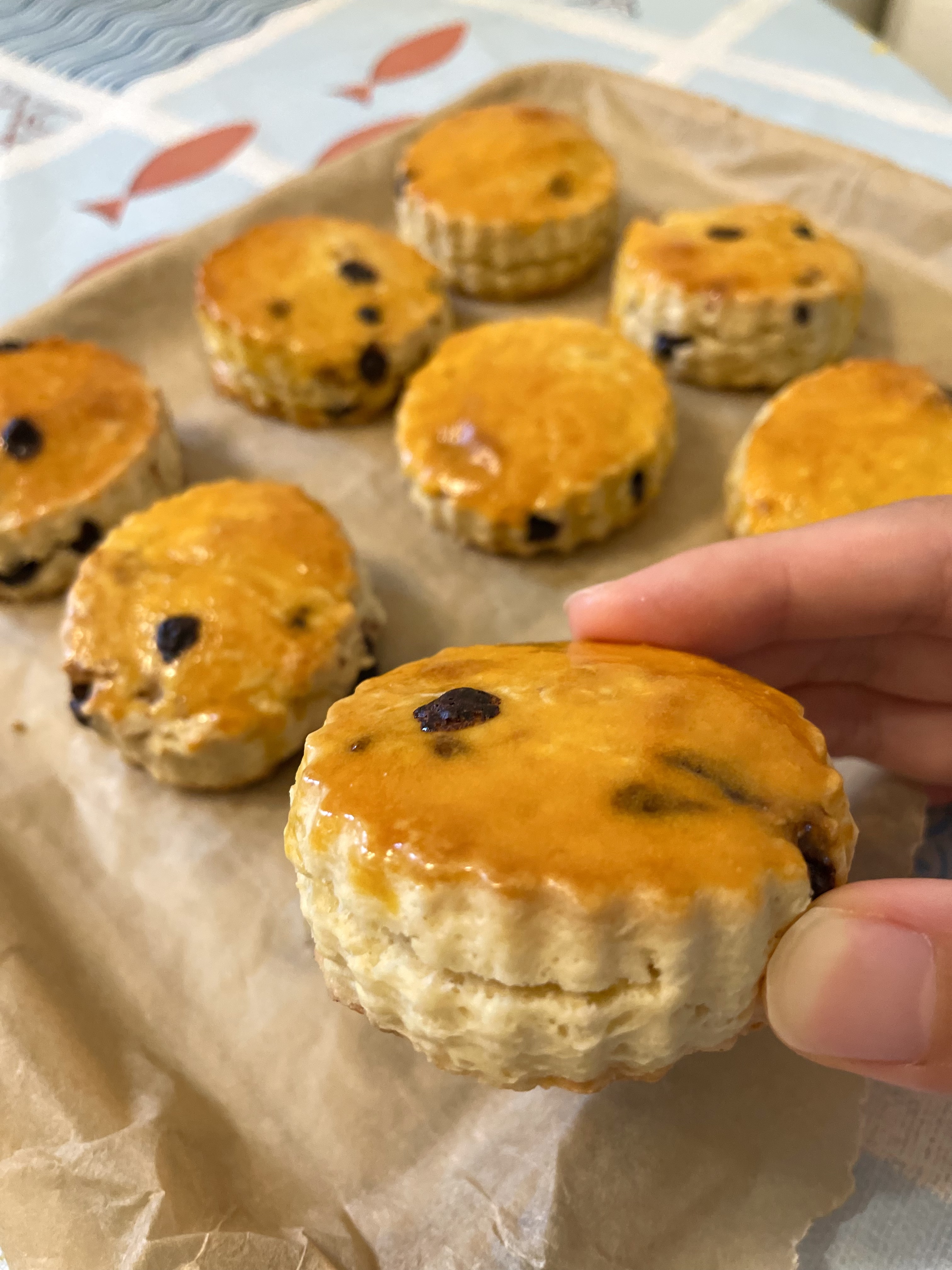 Brush the tops with a beaten egg, then carefully arrange on the hot baking tray. Bake for 10 mins until risen and golden on the top. Eat just warm or cold on the day of baking, generously topped with jam and clotted cream. If freezing, freeze once cool. Defrost, then put in a low oven (about 160C/140C fan/gas 3) for a few minutes to refresh.