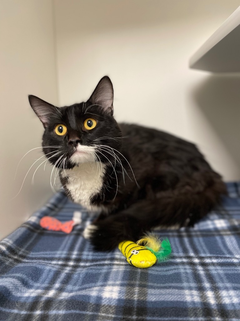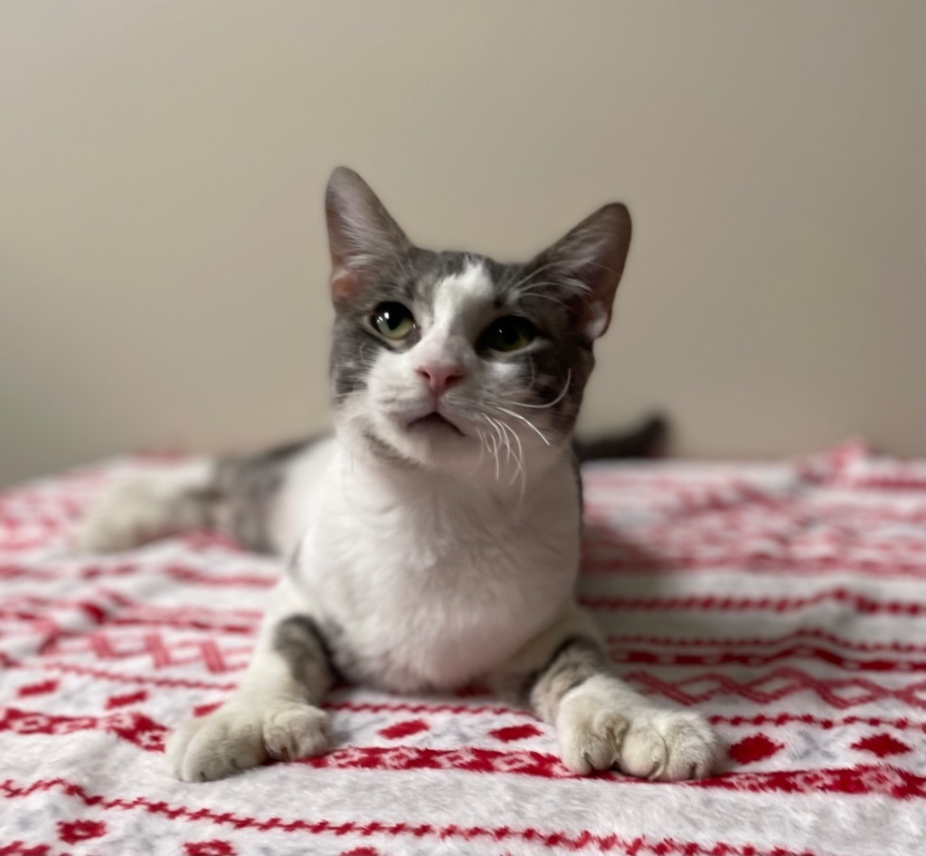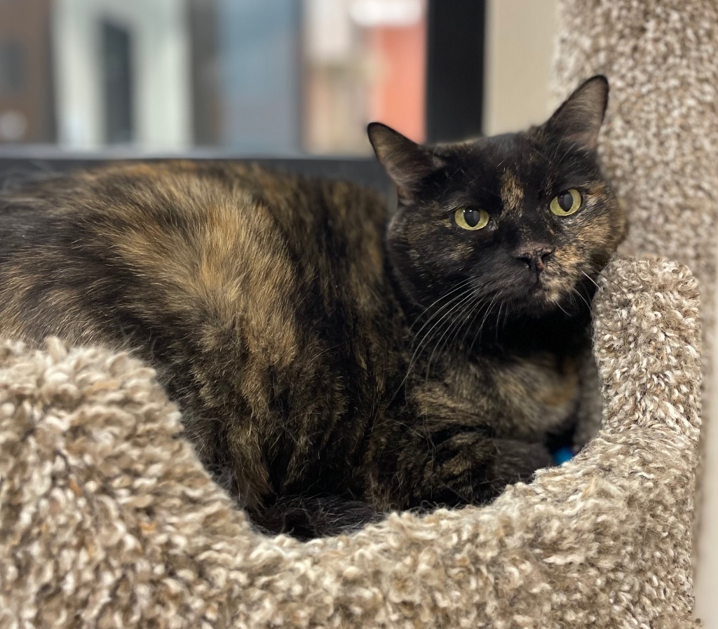 Crimble Crumble came to us via one of our branches after they were contacted by her owner who had decided that they no longer wanted a cat. Understandably Crimble Crumble has found the transition from home life to Adoption Centre a bit disorientating and she doesn’t seem to know how to react. If she can approach us on her own terms to say hello she seems interested in us however she isn’t yet at the point where she fully trusts us and if anything spooks her she will run back to the safety of her cabin or give us a quick bat to tell us to back off. she We are hopeful that in a quiet home where she can be given time and patience to settle in and feel secure that she will become a great companion.