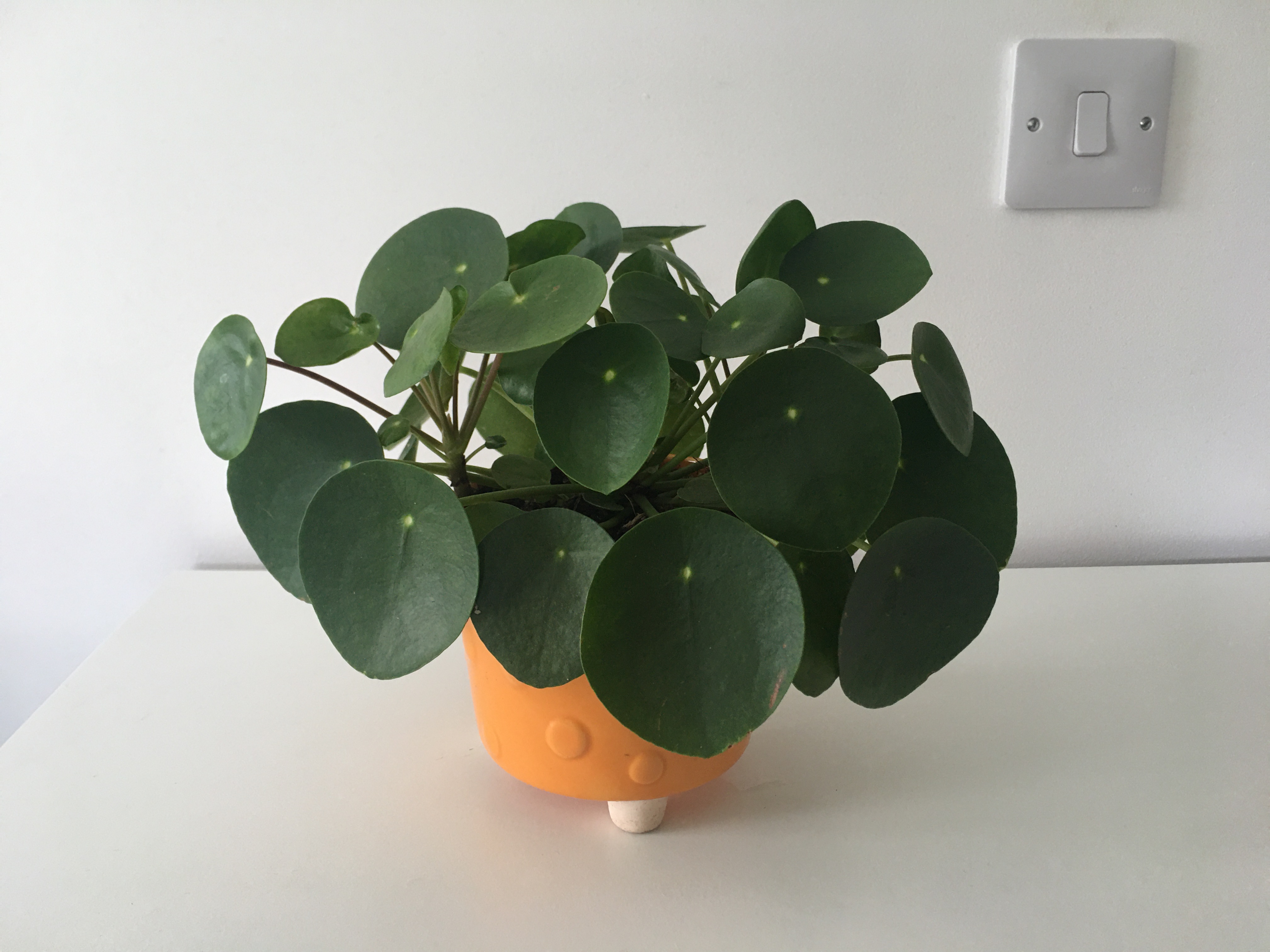 couple of months ago. Pancake plants enjoy indirect sunlight, but will start to discolour if left in bright direct light too long. Water about once a week over the summer, making sure that the soil is completely dry first and fortnightly during the colder months. They also enjoy having their leaves mistied quite often as they don't like being too dry.