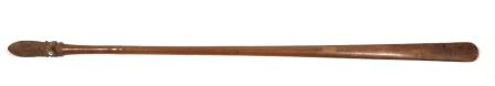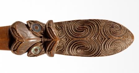 A taiaha is a traditional weapon of the Māori of New Zealand; a close-quarters staff weapon made from either wood or whalebone, and used for short, sharp strikes or stabbing thrusts with efficient footwork on the part of the wielder. Taiaha are usually between 5 to 6 feet in length. This is also incoporated into Kapa Haka to show agility, strength and skill. Short video about the Taiaha.