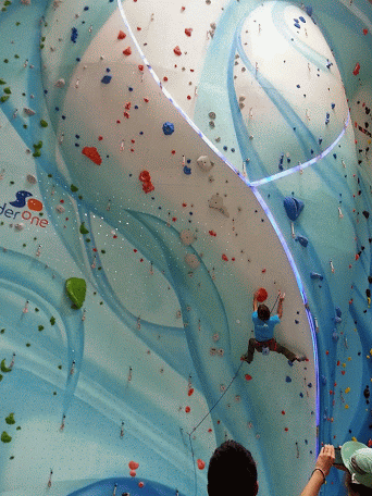 made of plastic. The general goal is to climb to the top of the wall