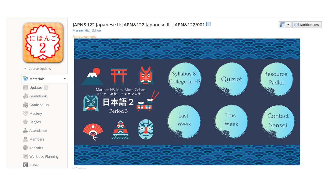 button links. I see my students use the banner every day when they need quick access to in-class assignments, Quizlets or the resource Padlet.