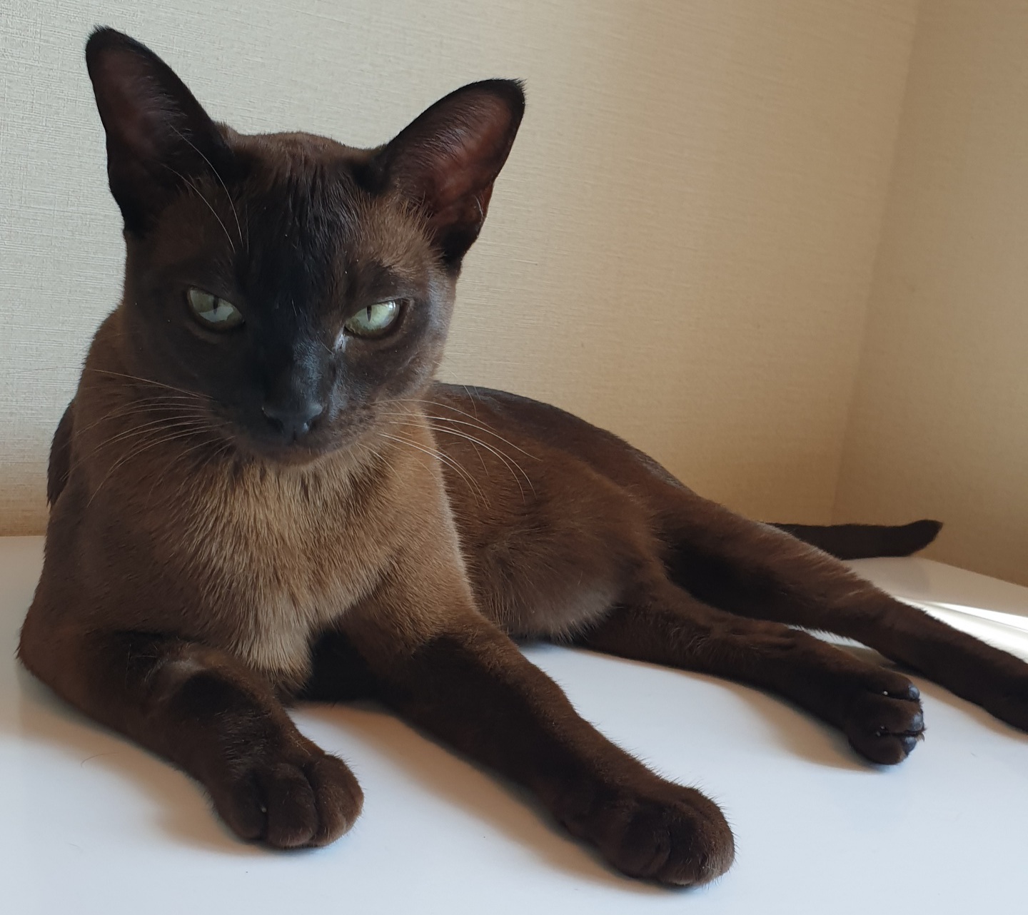 Most modern Burmese are descendants of one female cat called Wong Mau, which was brought from Burma to America in 1930 and bred with American Siamese. From there, American and British breeders developed distinctly different Burmese breed standards, which is unusual among pedigreed domestic cats. Most modern cat registries do not formally recognize the two as separate breeds, but those that do refer to the British type as the European Burmese.