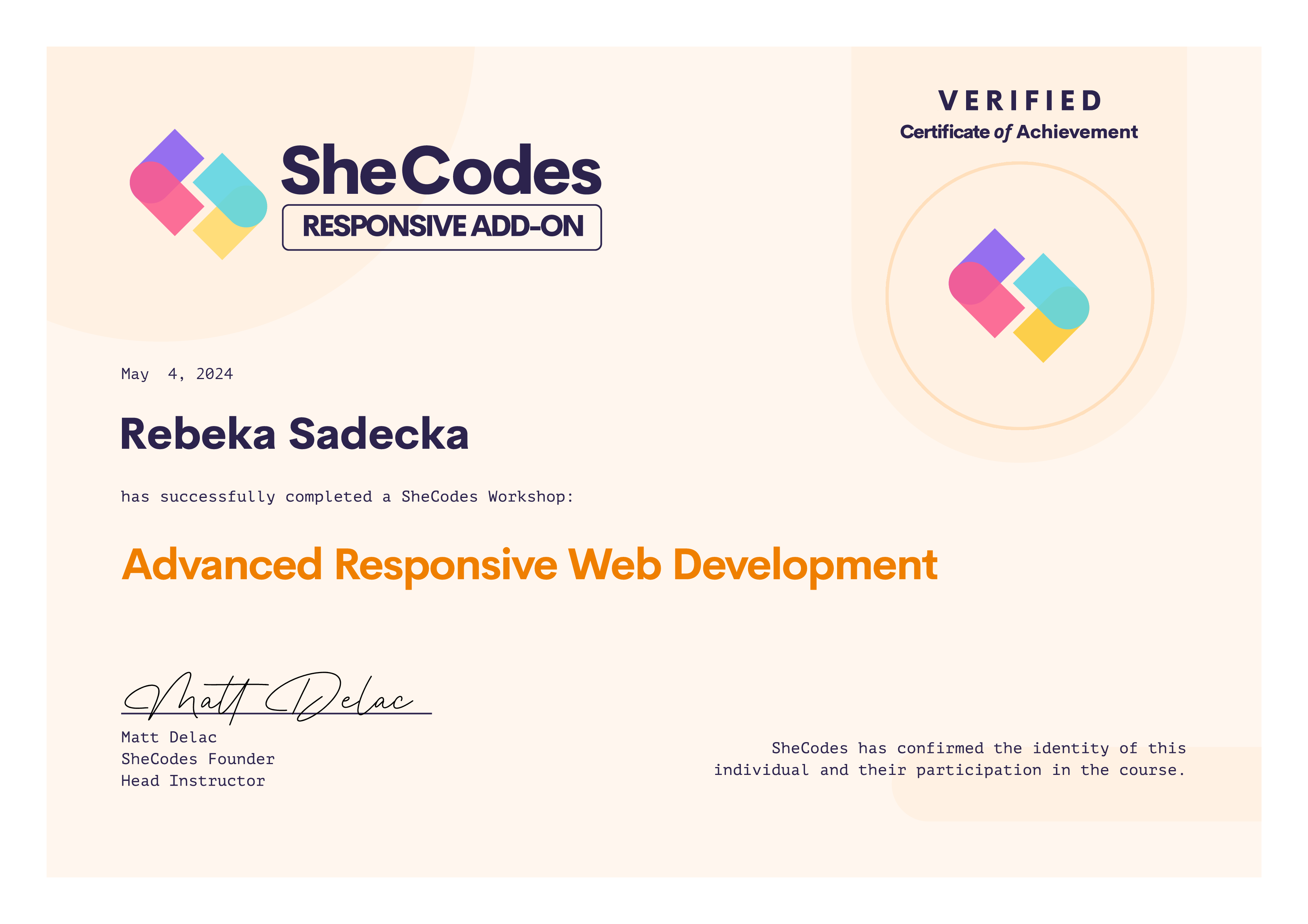 Rebeka Sadecka SheCodes Profile | SheCodes