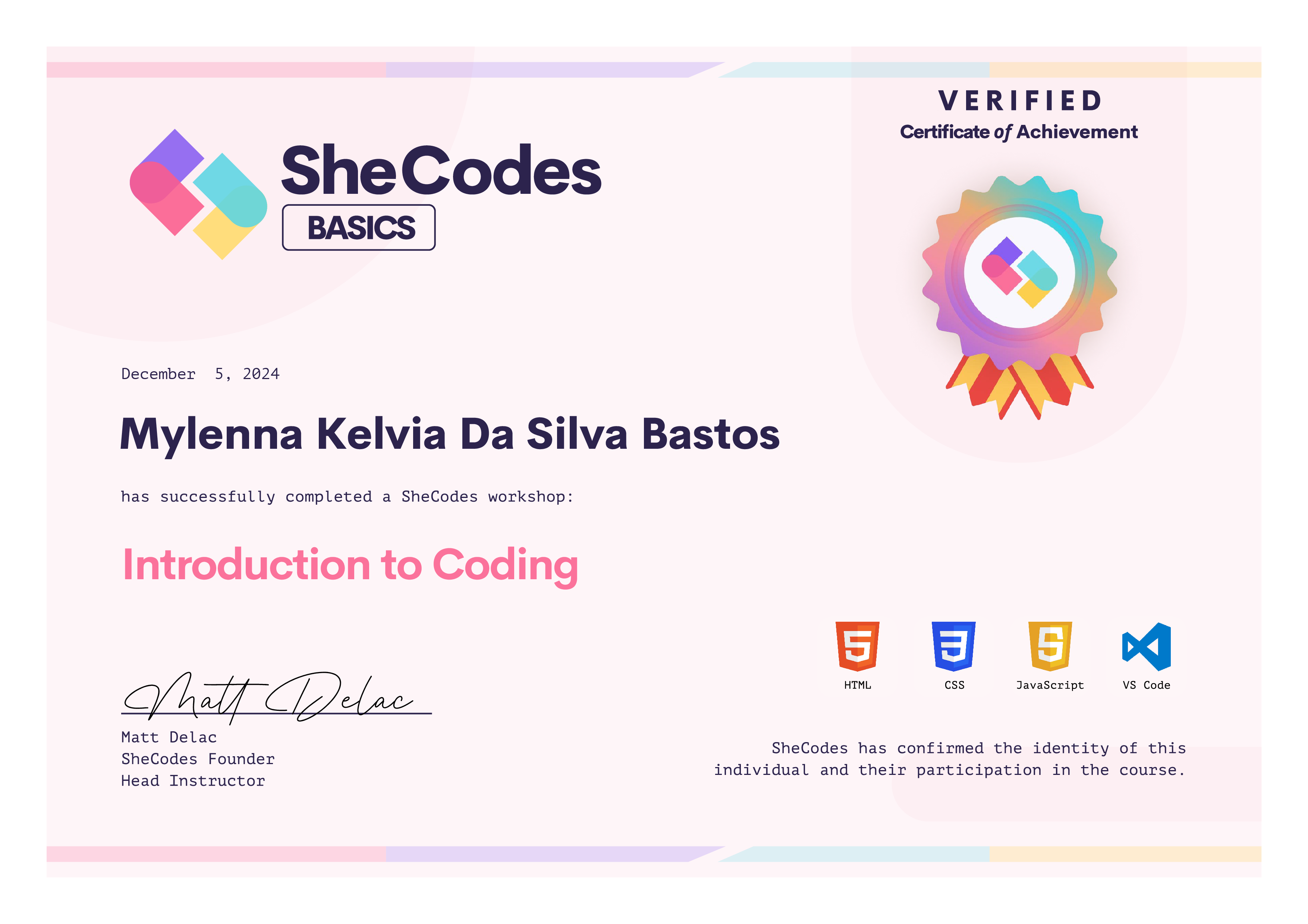 Mylenna Kelvia Da Silva Bastos SheCodes Profile | SheCodes