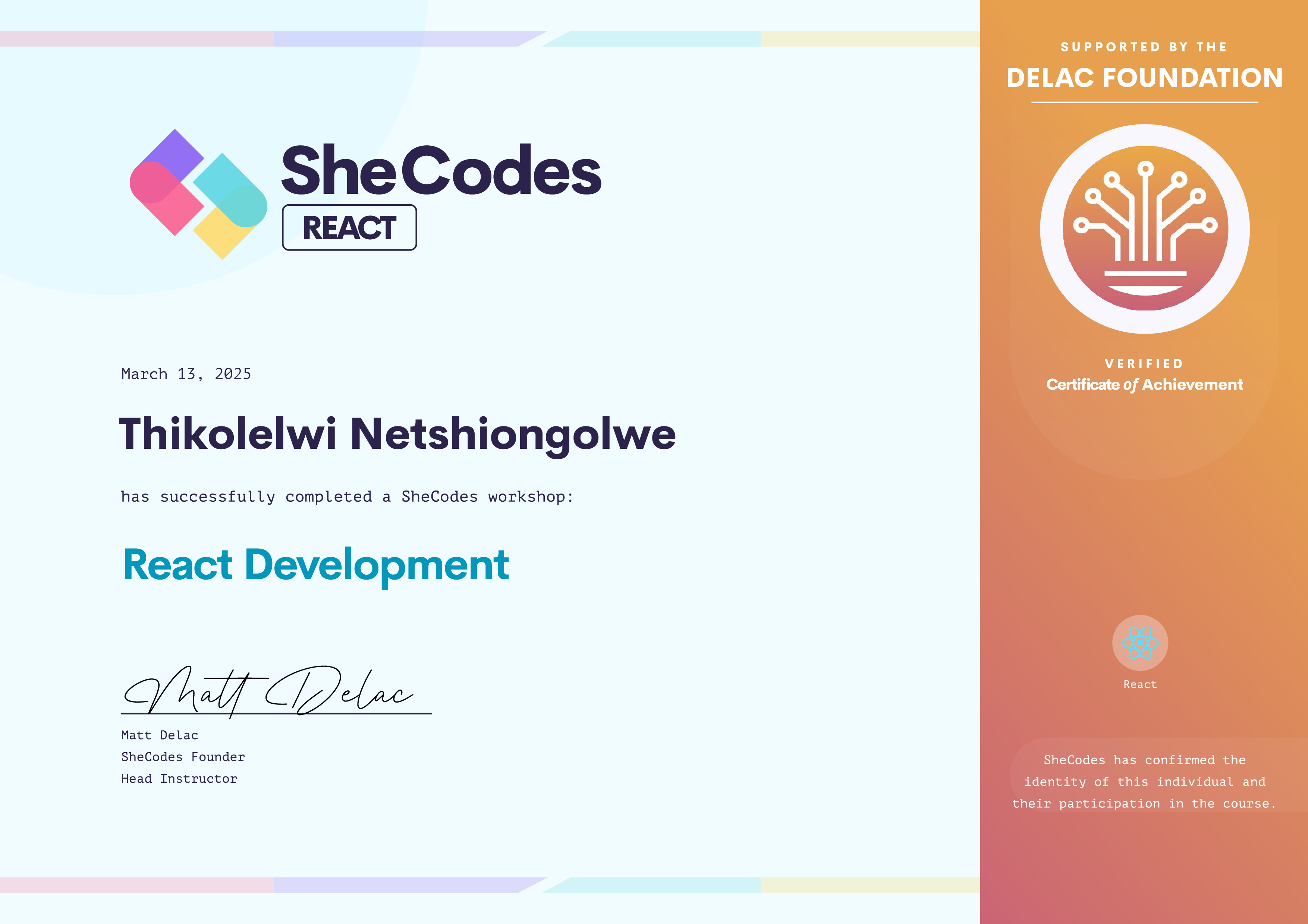 Thikolelwi Netshiongolwe SheCodes Profile | SheCodes