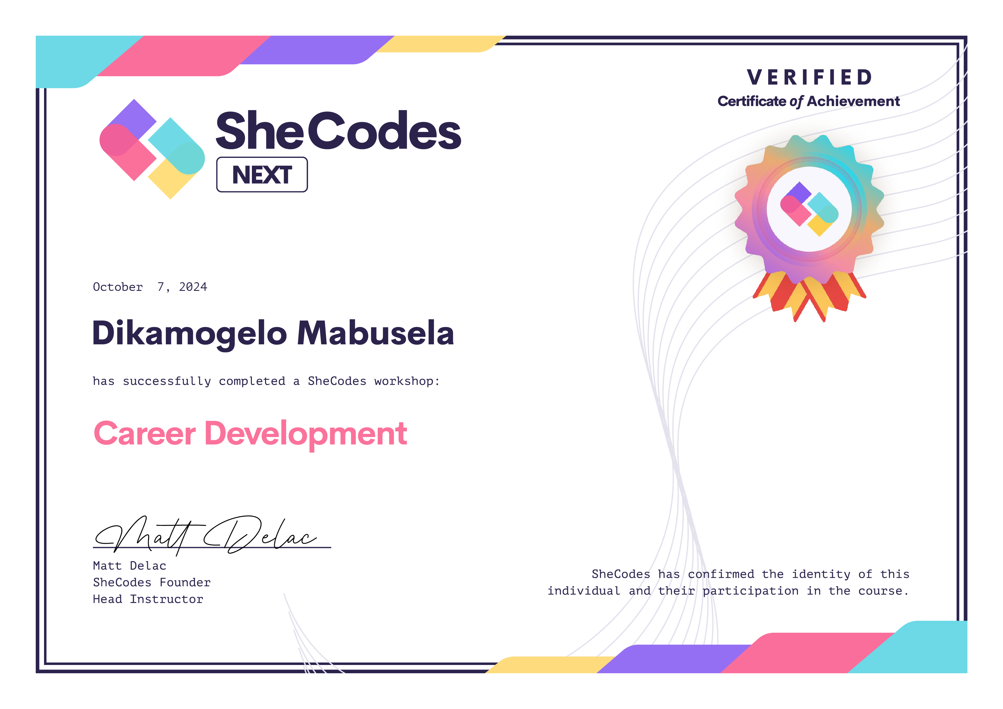 Dikamogelo Mabusela SheCodes Profile | SheCodes