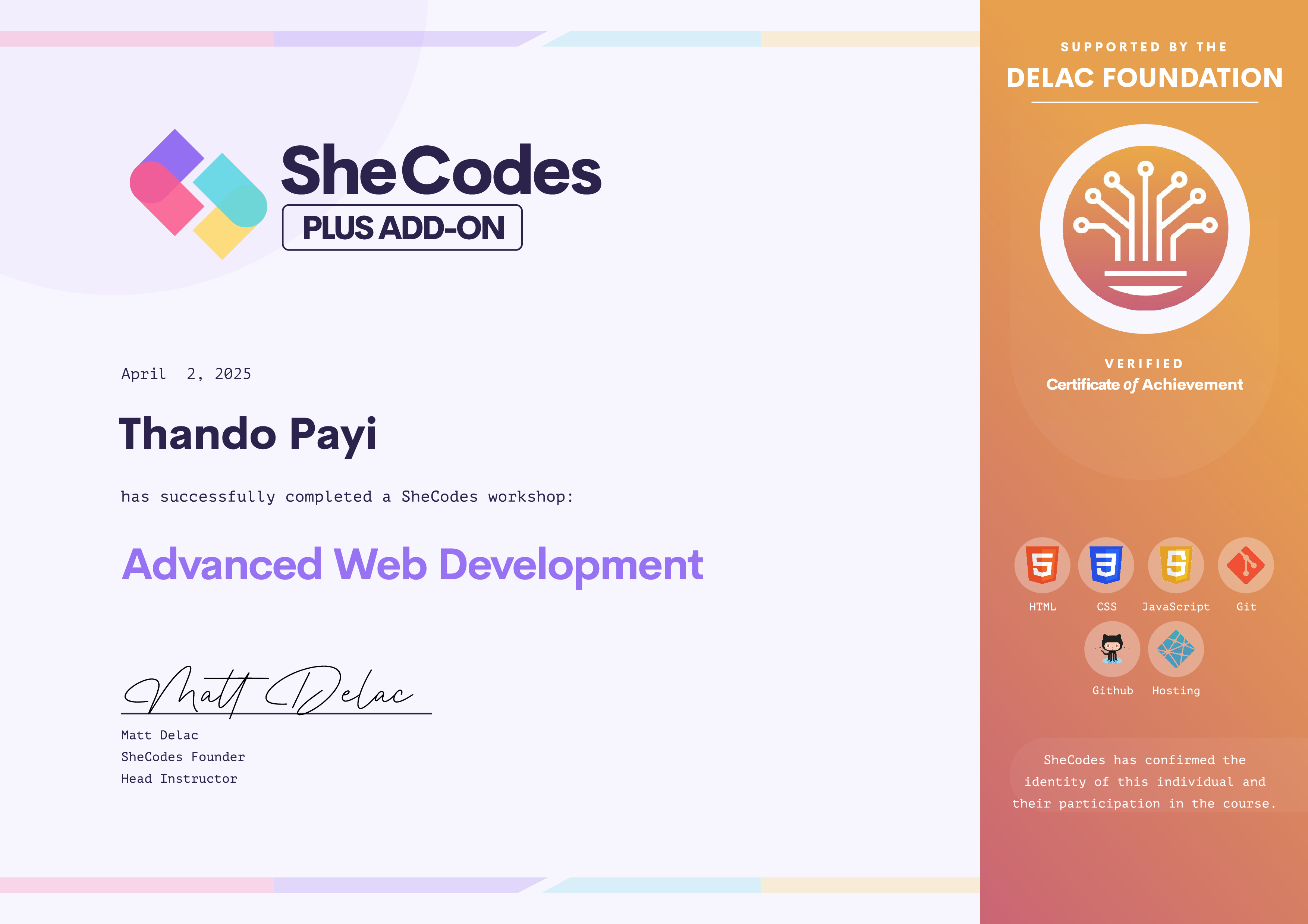 Thando Payi SheCodes Profile | SheCodes