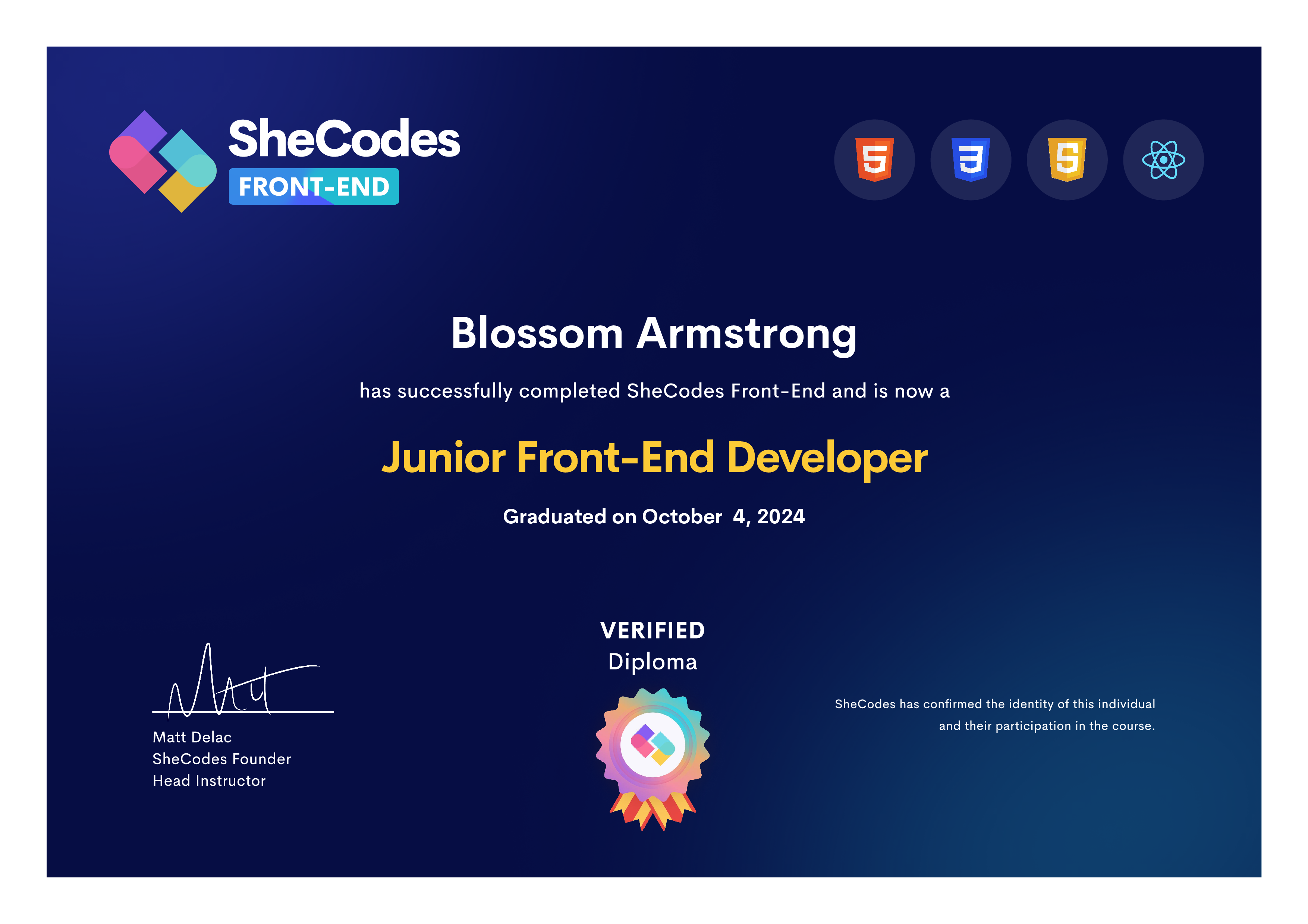 🎖️ SheCodes Verified Diplomas