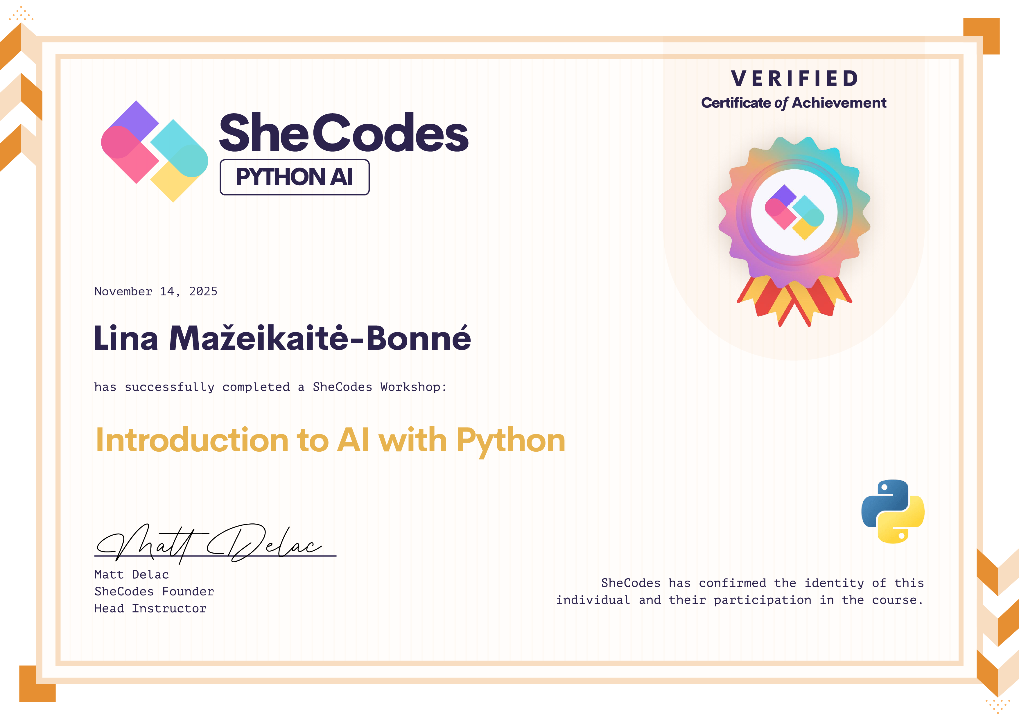 Lina Mažeikaitė-Bonné SheCodes Profile | SheCodes