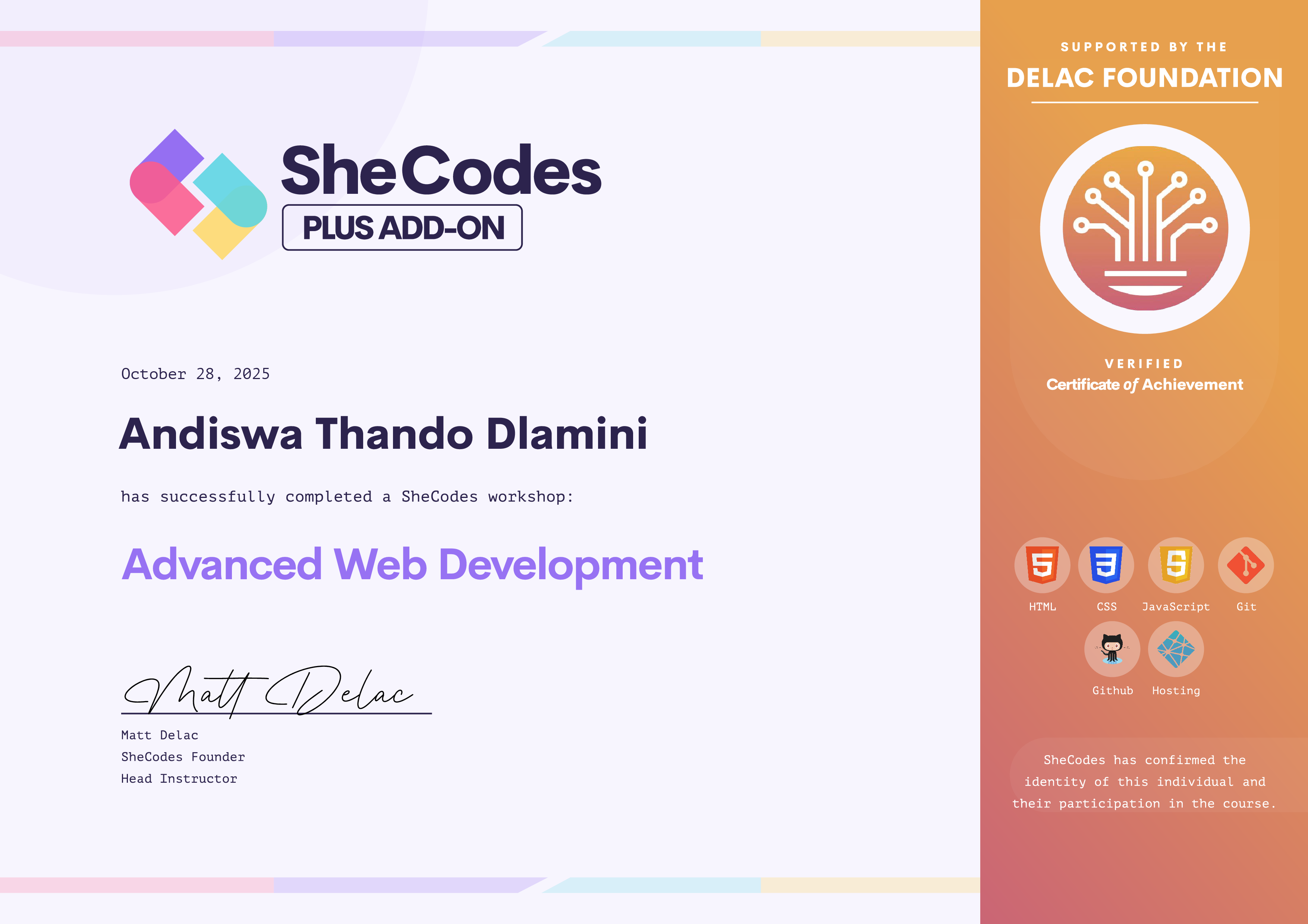 Andiswa Thando Dlamini SheCodes Profile | SheCodes