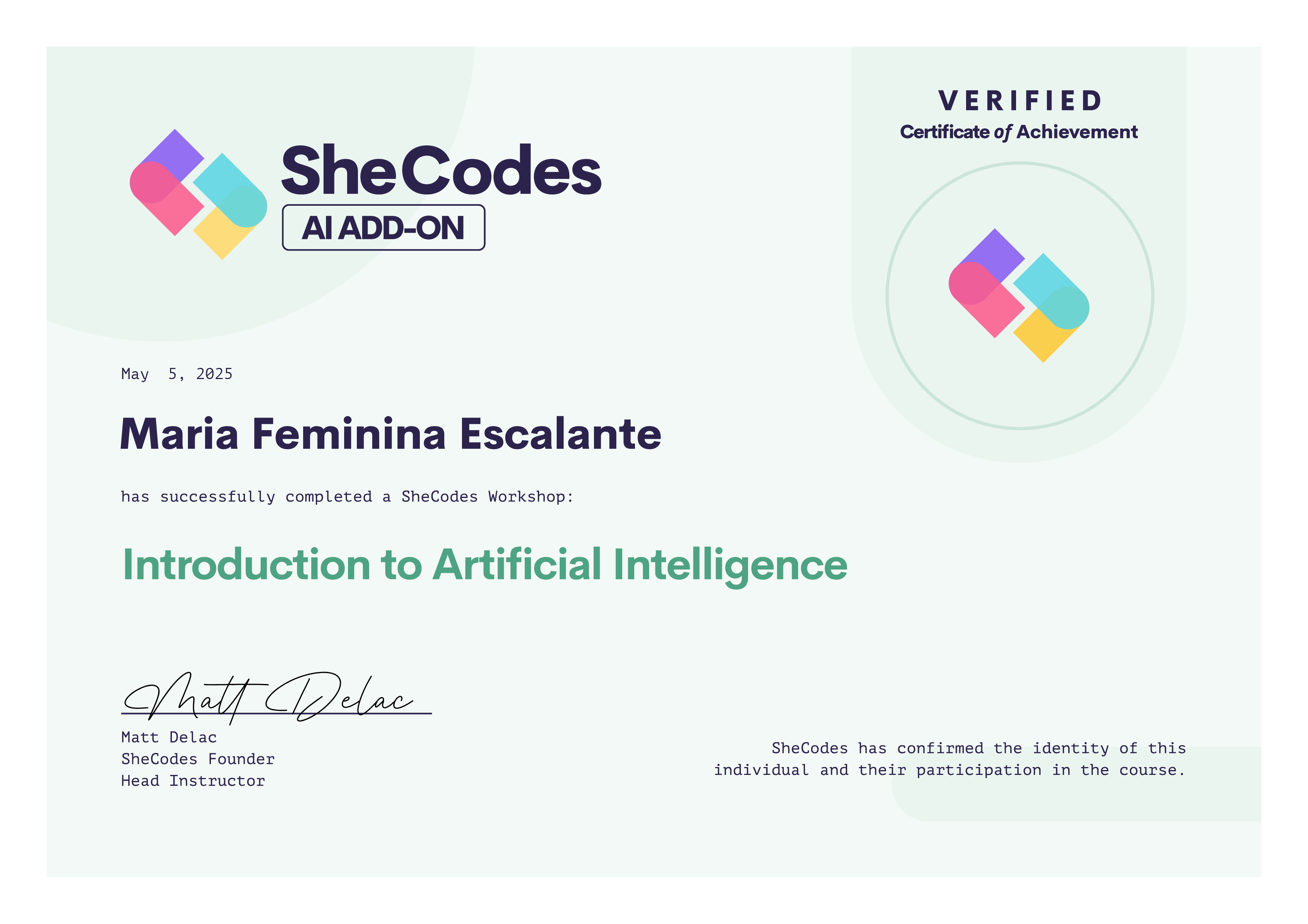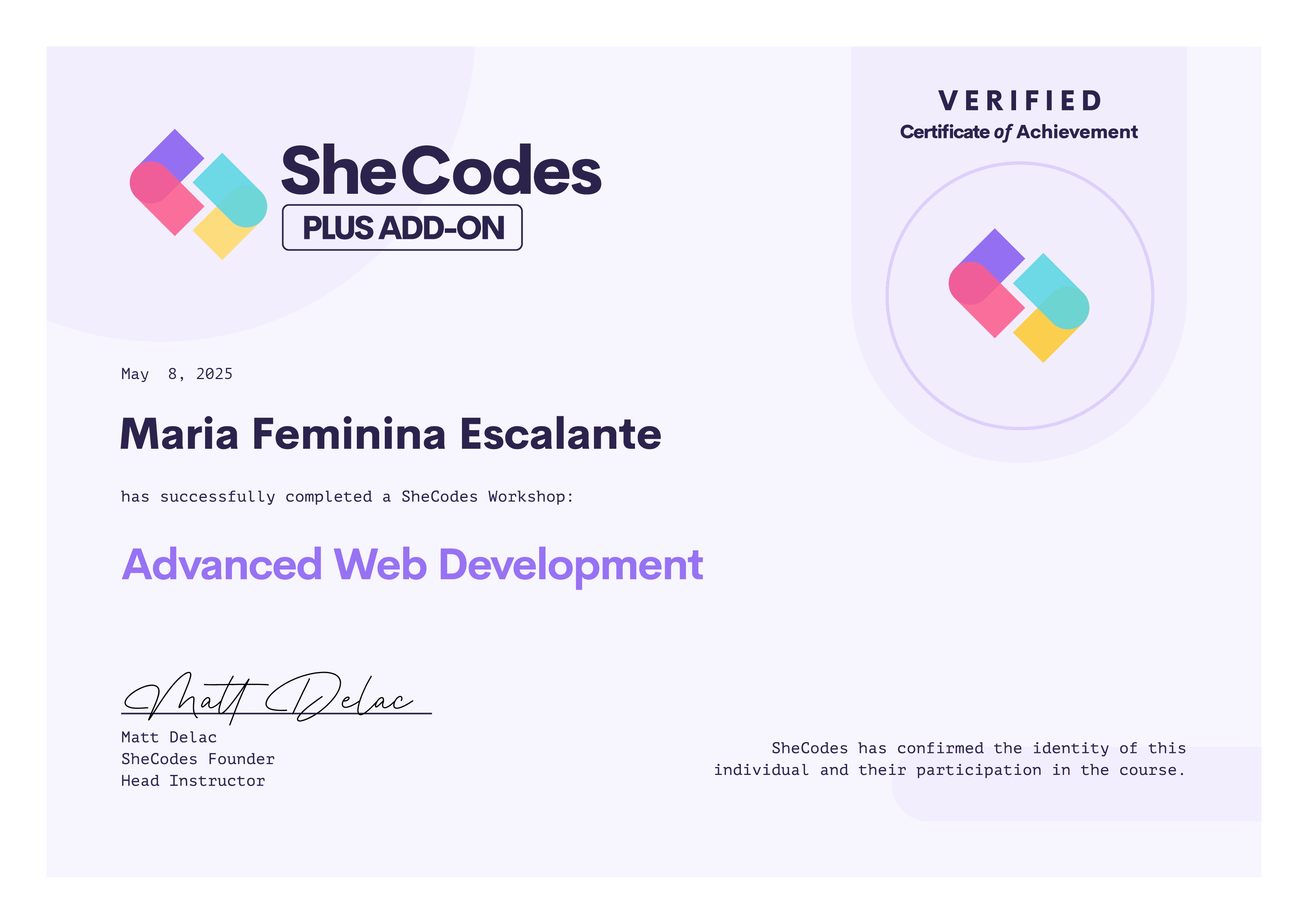 Maria Feminina Escalante SheCodes Profile | SheCodes